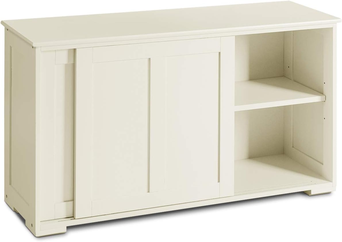 Description:Are you still worried about the messy kitchen? This sideboard is a great solution.With an adjustable inner shelf, this capacious storage cabinet provides you customized storage space to satisfy your demand. This wooden kitchen sideboard is sturdy, giving reliable support to your items. And you can take it as console table, buffet cabinet or side table and place it at dining room or entryway. With elegant look, it is a nice addition.Add a practical buffet cabinet to your kitchen.Features:Enough storage capacity to hold baskets, pots, dishes, etc.Inner shelf can be adjusted to 3 positions to meet needsBuilt in sturdy and durable structure to offer enough supportRoomy top for perfectly keeping and displaying different objectsTimeless appearance fits flawlessly in various interior designsApplicable to kitchen, dining room, entryway and moreEasy to be assembled with step-by-step instruction manualSpecifications:Color: Black/WhiteMaterial: MDFOverall size: 42” x 13” x 23.5”(L x W x H)Net weight: 44 lbsPackage includes:1 x Kitchen cabinet1 x Manual