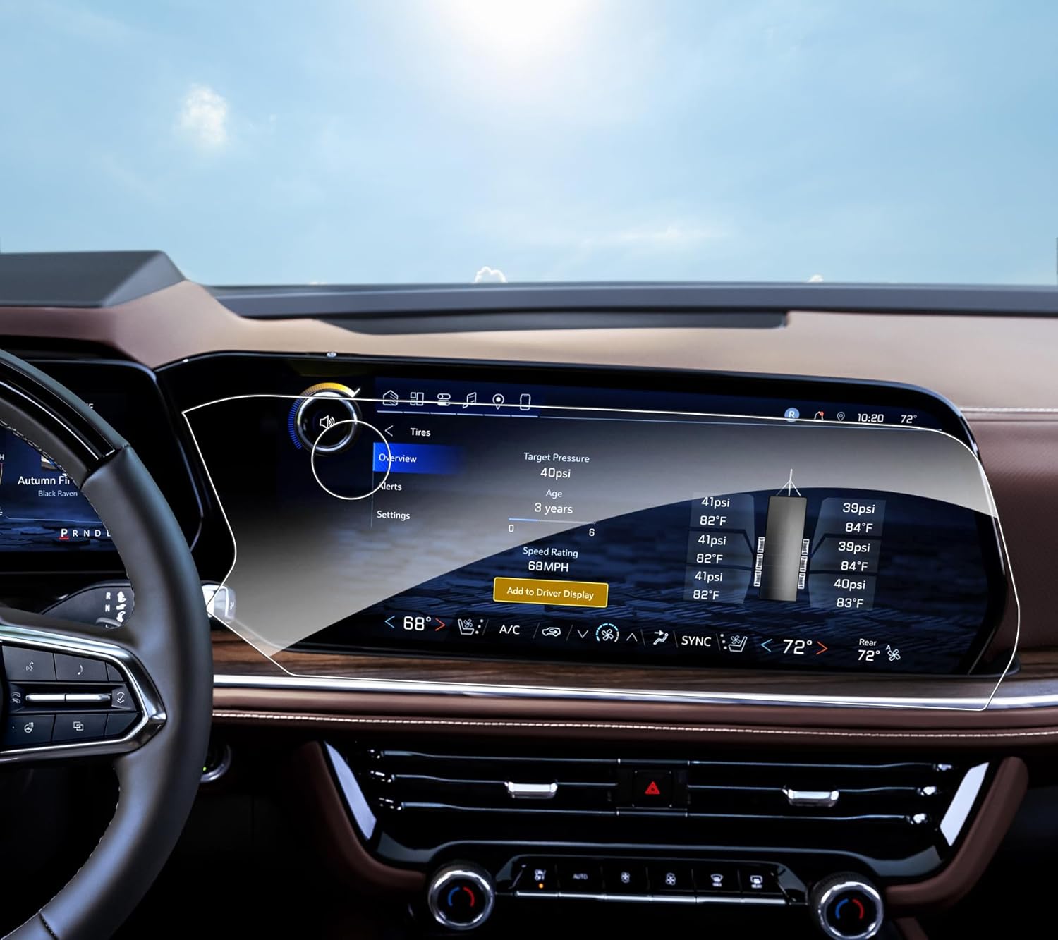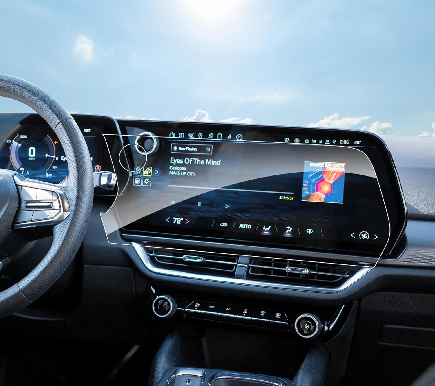 • 【Designed for】for 2025 2026 Chevy Traverse screen protector is compatible with for 2024 2025 2026 Chevy Traverse (LS, LT, Z71, RS), 2024 2025 2026 Chevy Blazer EV (LT, RS, SS), 2024 2025 2026 Chevy Equinox EV (1LT, 2LT, 3LT, 2RS, 3RS), 2024 2025 Silverado EV (First Edition-RST, LT, RST, WT, Trail Boss) 17.7-inch diagonal screen & 11-inch dashboard screen, highly match with 2024 2025 Chevy Traverse & Blzer EV & Equinox EV & Silverado EV accessories. It is intelligently designed to fit the 2024 2025 Chevy Traverse's center navigation screen perfectly