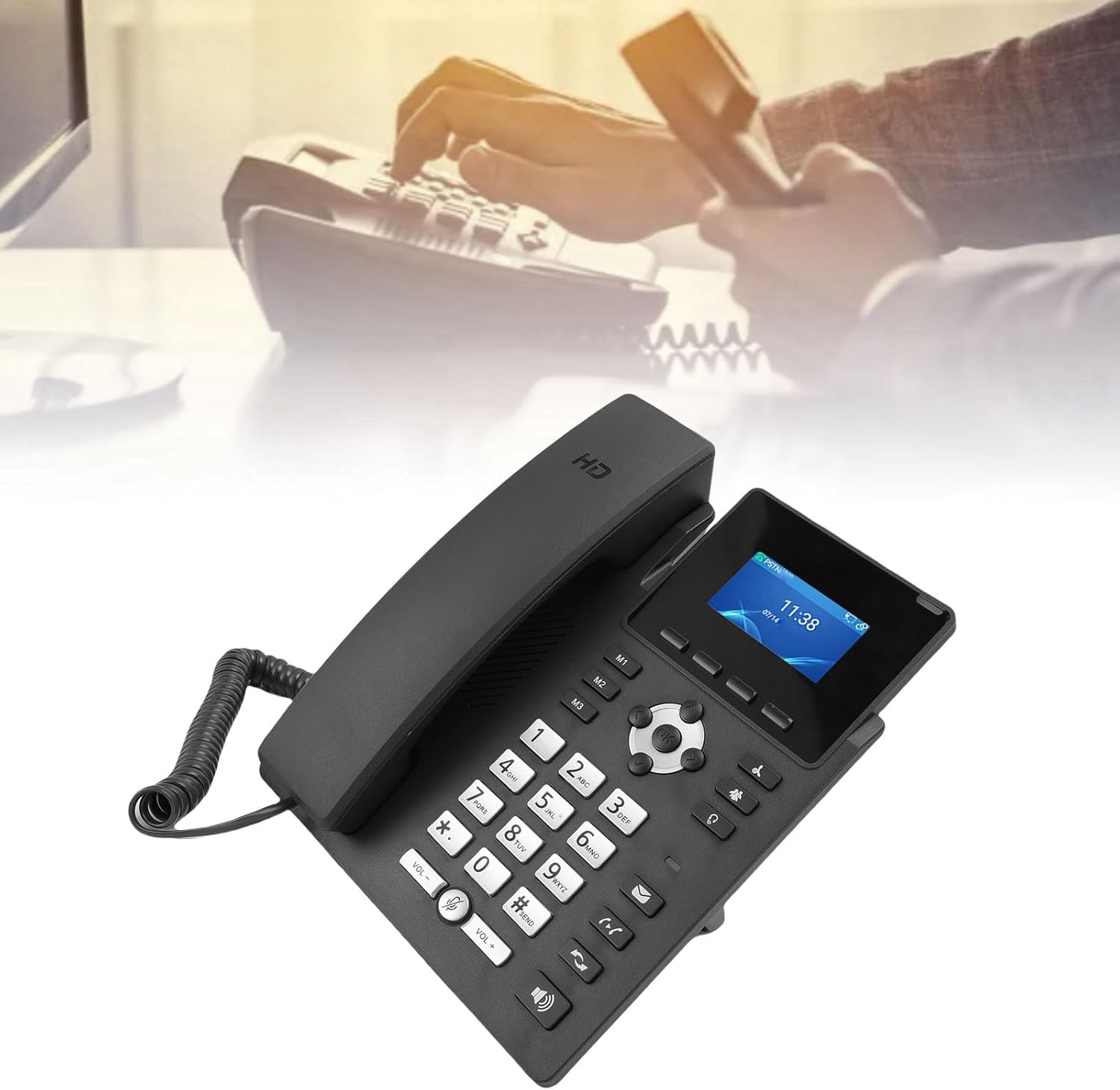 1. Supports 2 Service Lines: The phone supports 2 service lines, making it an ideal telecommunication solution for small businesses and startups. With a 2.4 inch display screen and functional buttons, you can easily see who is available to take calls or determine whether to forward a call to voicemail. 2. Compatibility: The USB A, RJ9, and ports allow you to connect not only traditional handsets but also compatible headsets, accommodating any work style. This versatility ensures you can choose the best audio solution for your needs, whether in a busy space or a more private setting. 3. Special Design: This IP phone features a backlit 2.4 inch graphical LCD. It supports Power over Ethernet (PoE), ensuring a clean and organized setup. 4. Noise Cancellation Technology: If your work environment can occasionally be noisy, you will appreciate the noise cancellation technology integrated into this IP phone. This feature minimizes background noise and works in tandem with VoIP technology to ensure clear calls, allowing you to hear even the smallest details without distraction. 5. Convenience: Powerful phone deployment and support for configuration and management make setup a breeze. The ideal entry level phone for public areas. The IP Phone combines beautiful ergonomics with an intuitive user touchscreen interface. Spec: Item Type: Business IP Phone Material: ABS Color: Black Use System: For 7.1 Display: 2.4 inch 320x480 Color LCD Power Supply: POE Network: Dual 1000M RJ45 SIP Line: SIP 2.0 Standard 2 Lines Audio Conference: 2 way Conference Interface: 1 x WAN and POE Interface, 1 x LAN Interface, 1 x Handset Interface, 1 x Headset Interface Compatible Headsets: Compatible for USB A, for RJ9 and for Port Headsets How to Use: Take out the product and it is ready to use PackageList: 1 x Phone 1 x Handset 1 x Phone Line 1 x Ethernet Cable 1 x User