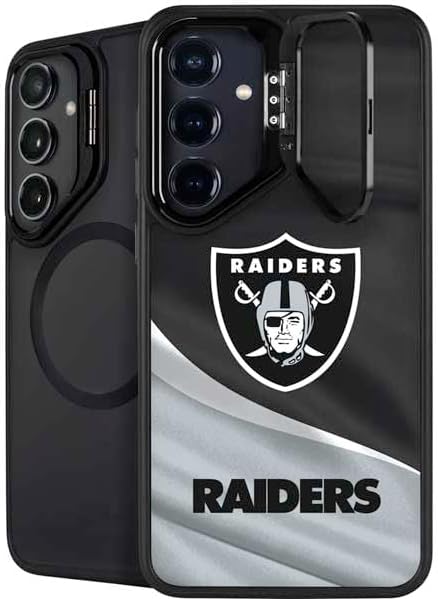 The NFL Las Vegas Raiders Team Jersey Kickstand Case compatible with Galaxy S25 is the ultimate in versatile protection and convenience. Featuring an innovative lifted camera ring with a built-in stand, it allows hands-free video watching with adjustable angles from 0 to 150 degrees. This premium Las Vegas Raiders Case supports wireless charging and is fully compatible with MagSafe, offering a sleek design without compromising on durability or functionality.