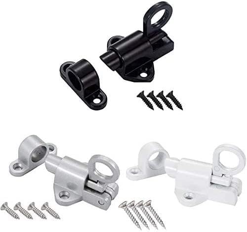 DeadboltsEnsuring quality and longevity.Aluminum automatic door bolt, spring loaded, pull ring bounce.EASY INSTALLATION: Including mounting screws.Suitable for home, room doors, windows, etc.good replacement,and durable ,sturdy.can be used to enhance security for doors,gates and windows.Material: Aluminum AlloyColor: Black/gray/whiteDimension: 58 x 44mm/2.28 x 1.73 inch(L x W)Weight: 1.485 ounces/42gPackage Contents:1 * Self Closing Latch Bolt4 * Self-tapping ScrewsOnly the above package content, other products are not included.Note: Light shooting and different displays may cause the color of the item in the picture a little different from the real thing. The measurement allowed error is +/- 1-3cm.