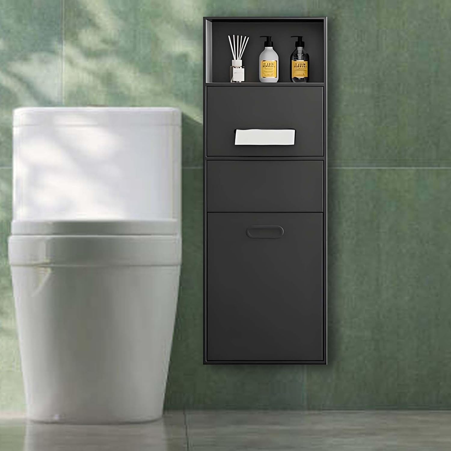 Are you looking for a stylish solution to manage clutter in your bathroom? Our innovative built-in trash can with an integrated toilet paper holder is the perfect answer to keep your space organized and tidy. Say goodbye to traditional floor-standing trash cans that take up valuable space and hello to a modern design that enhances your bathroom's aesthetic.Designed with functionality in mind, our tilt-out trash can discreetly conceals waste while providing easy access when you need it. The dedicated toilet paper holder ensures rolls stay secure and within reach, making it an ideal choice for small bathrooms or tight spaces. Crafted from high-quality stainless steel, this product is easy to clean, eliminating the hassle of sticky plastic cans and rust stains.Available in a sleek black, white, or gray finish, this built-in solution seamlessly fits into any decor style, from contemporary to rustic. It’s perfect for apartments, kitchens, or even laundry rooms, maximizing corner spaces without compromising on style or functionality.Specifications:- Material: Stainless steel- Color Options: Black, White, Gray- Mount Type: Recessed- Trash Can Dimensions: Width 9.6 inches x Height 10.4 inches x Depth 4.9 inches- Overall Dimensions: Width 11.8 inches x Height 26 inches x Depth 5.5 inches- Cutout Dimensions: Width 11.2 inches x Height 25.4 inches x Depth 5.5 inches- Weight: 13.2 lbsPacking List:- Built-in Trash Can with Toilet Paper Holder x1Notes:1. Please allow for slight color variations due to lighting and a 1-3 cm measurement error.2. Ensure the cutout for installation is prepared according to the recommended dimensions; professional installation is advised.Transform your bathroom into a clutter-free oasis with our built-in trash can—where style meets practicality.