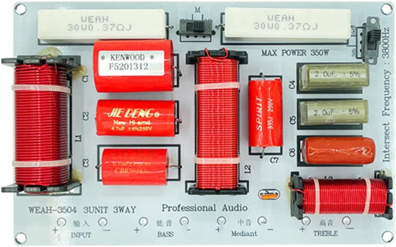 Speakers Frequency Divider Board Treble Bass 3 Way Sound Crossovers Filter Frequency Distributor ModuleFeatures: Enhances your Sound experience with Speakers Frequency Divider Board, a professional 3 way Crossovers filter deliver superior sound quality and protect your speakers with its over current protective design.This frequency divider board features capacity, ensuring that each Speakers unit receives the frequency for performances.Ideal for enthusiasts and Sound professional, this Crossovers filter is perfect for those customize their KTV or stage Speakers systems for unparalleled sound.Whether you're setting up a home theater systems or equipping a professional stage, the Crossovers filter ensures your speakers perform at their best, making it essential component in quality Sound setups.With its construction of metal and plastic materials, this frequency divider board is making for enhancing your Sound equipment performances.Specifications: Component:Metal+PlasticType:309 150W/3602 150W/200W/250W/300W/350W/400W/500W/700W/800WPackage Includes: 1Pc Frequency DividerNote: 1.Please allow 1-2cm errors due to manual measurement, making sure that you not mind before order. 2.Due to the differences between different monitors, the picture may not reflect the actual of the item.