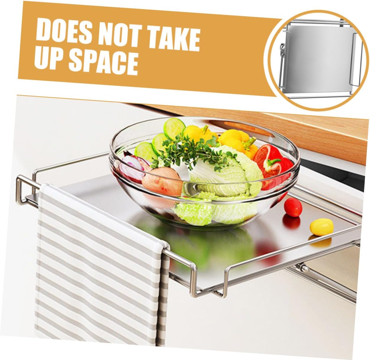 Package Include 1 x Door Shelf Features -Product Info:Kitchen storage rack -Color:Silver -Size:31.00X30.00X10.50cm/12.18X11.79X4.13in -Material:Stainless steel -Stainless steel material, anti-aging, and safe for long time use. Door hanging storage, does not take up space. -The Hanging Shelf has strong load-bearing capacity and is suitable for storing items in hotels kitchen, bathrooms and other places hanging organizer. -Large-capacity storage rack helps you quickly find what you need without wasting time hanging shelf. -The feature is non-punching, it will not hurt your wall, and will not leave a trace when you remove it door hanging storage. -The kitchen storage rack can help you store various kitchen products, convenient to use cabinet shelf.Goods Descriptionhanging shelf kitchen It is made of stainless steel materials and can support your long time use.portable shelves If you are looking for a practical and kitchen Cabinet Door Shelf, then you should take at our Hanging Shelf, which can meet all your need