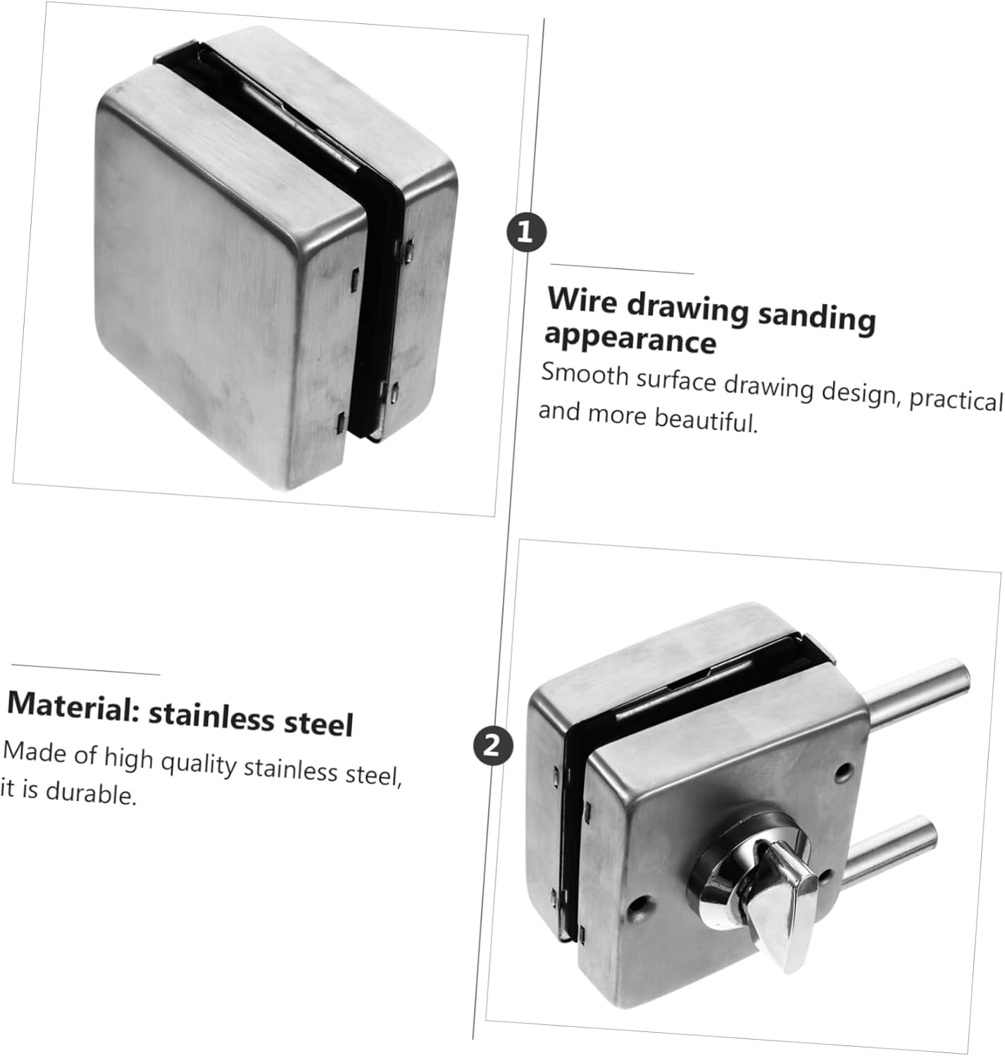 Package Include 1 x door lock Characteristics - Material: Stainless steel Stainless Steel Gate Lock. - Size: 15.50X9.50X8.00cm/6.09X3.73X3.14 inch Gate Lock. - Color: Silver Stainless Steel Gate Hasp. - Though it is simple , it's so practical when you use it Glass Door Stainless Steel Hasp. - The excellent workmanship of our product will bring you a good experience Gate Hasp. - Polishing treatment, to , to paint off Frameless Gate Hasp. - Adopting great quality material, which let you use for a very long time Glass Door Stainless Steel Lock. - Easy and convenient to install and use, it is a very useful door lock Frameless Glass Door Hasp.Goods InformationGlass Door Stainless Steel Hasp Made of material for long time and durable use.Stainless Steel Gate Lock It is sturdy, to break, , surface prevention, to paint off.Frameless Glass Door Hasp It has a simple design, but very practical in use, giving you a