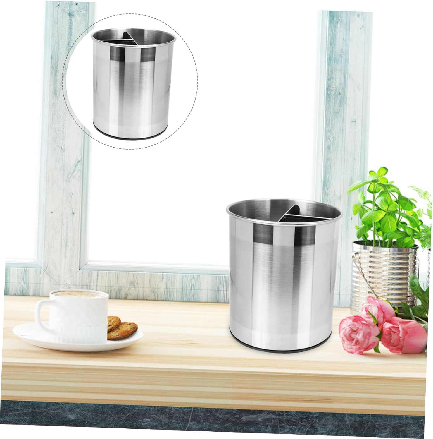 Package List 1 x bucket Features -Color: Silver. utensils holder -Capacity: 4L container for kitchen utensils -Size: About 19.50X17.50X17.50cm/7.66X6.88X6.88inch. kitchen utensil holder -Material: Stainless Steel. space saving utensil holder - Made of and material long time and use utensil metal holder. - Lightweight and portable, it is very convenient for you to carry kitchen utensil organizer. - It is simple , but it's to use, which will give you a good use experience kitchen utensil holder stainless steel. - You will have a good use experience because of the perfect workmanship of this product kitchen utensil holder for countertop. - Fine workmanship and creative appearance ensure its popularity and practicality utensils holder for kitchen counter.Goods InformationHome Storage Bucket Made of stainless steel material.kitchen supplies holder Multi-grid rotating design, more convenient to use.Utensil Organizing Bucket It has enough capacity for your daily use.kitchen utensil holder This is a creative storage bucket that can be used in desktop, office, bedroom, etc