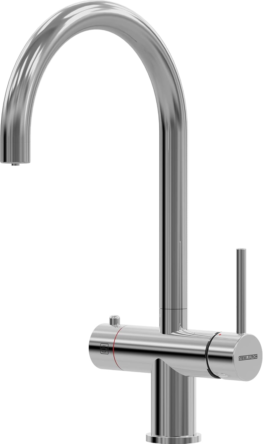 UltraHot Plus™ Instant Hot Water Dispenser delivers near-boiling hot water conveniently and affordably at your sink at the touch of a tap. UltraHot Plus ™ is intended for residential use only. The more powerful UltraHot Premium™ is intended for both light commercial or residential use. An UltraHot Plus™ can be installed as a new appliance or alternative to an existing dispenser. It was engineered for compatibility with InSinkErator® instant hot water dispenser tanks and faucets. Easily installed under the sink, the water connections require no tools. Why wait for piping hot water? UltraHot Plus™ delivers near-boiling hot water instantaneously on demand for tasks like fast hot drink preparation; piping hot water for pasta, rice, and instant soups; preparing vegetables; warming baby food and bottles; cleaning greasy pots and pans; cleaning chopping boards and knives. There is no need to set the hot water temperature on the UltraHot Plus™. A patented system automatically senses and sets the highest possible boiling water temperature for any altitude. If a lower temperature is desired it can be easily be adjusted as low as 149°F. A sophisticated illuminated digital display accesses temperature settings, timer settings including night modes, and more. The heating element and tank are corrosion-resistant high-quality stainless steel designed and manufactured to be long-lived, hygienic, and prevent odors and off-taste. The extremely well-insulated tank reduces standby heat losses for lowest power consumption. Safety features include frost protection from freezing, and dry-fire detection to prevent burnout if no water is present. Like all Stiebel Etron products, UltraHot Plus™ is engineered and designed to be reliable and energy efficient in addition to performing superbly for its task.