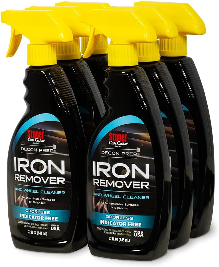 Stoner Car Care Iron Remover & Wheel Cleaner is engineered to break down embedded iron particles, brake dust, and industrial fallout that regular washing cannot remove. Designed for use on paint, wheels, and glass, this advanced formula restores a smoother, cleaner surface by dissolving contamination at its source. Unlike traditional iron removers that overwhelm with harsh chemical odors, Stoner’s patent-pending chemistry is completely odorless, creating a more comfortable detailing experience in the garage or driveway. The pH-balanced formula is tough on rust particles and brake dust while remaining safe for clear coats, polished metals, chrome, and exterior automotive surfaces. For those who prefer visual confirmation during application, the Color Indicator version sprays on blue and turns orange as it reacts with iron deposits. For professionals and enthusiasts who prefer a dye-free formula, the Indicator-Free version delivers the same powerful decontamination performance without color-change additives. Ideal as a preparation step before clay bar treatment, polishing, waxing, or ceramic coating application, Stoner Iron Remover & Wheel Cleaner helps create the clean foundation necessary for long-lasting shine and protection. Trusted by detailing professionals and enthusiasts since 1942, Stoner Car Care delivers serious cleaning performance without compromise.