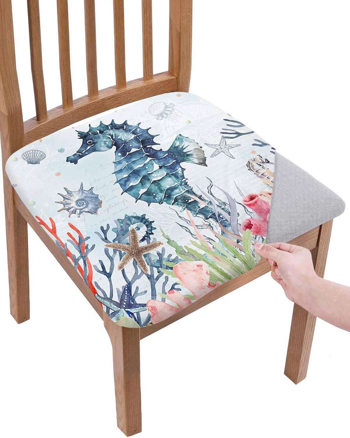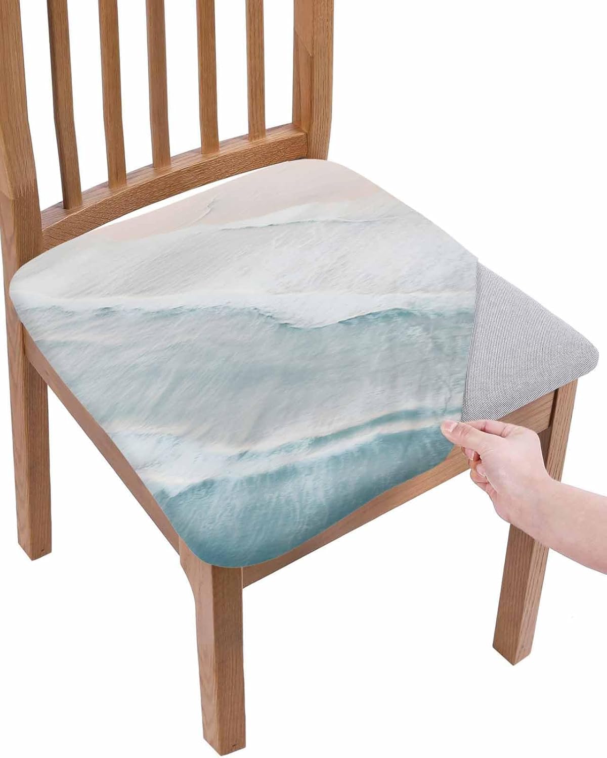 Premium Chair Covers: - Our chair cover fabric is soft and comfortable, so you don't get tired after sitting for a long time - Exquisite one-sided printing, beautiful and fashionable - Removable and washable, can be reused - The elastic design makes the installation of the seat cover more convenient - The elastic lock side is compliant and does not slip About Size: The size of the dining chair cover is 13.7" x 13.7", which can be applied to cushions with a length of 13.4"-18", a width of 13.4"-18", and a thickness of 1"-2.4" Application: office chair cover, cushion covers, dining room chair covers, chair covers for party chair, bar stool covers, wedding chair covers, etc. Summer Room Decoration: The embodiment of loving life is not complicated, just the right color is needed. The soft texture of the chair cover feels more comfortable to the touch, and a few simple installation steps inadvertently improve the quality of life. Easy to Install: Chair seat cover is easy to install, suitable for dining chairs, kitchen chairs, banquet chairs, electric wheelchairs, bar stools, armchairs, office chairs, glider ottoman, needlepoint chairs, accent chairs and more. Care Instructions: Avoid washing with other dark colors. Machine wash cold separately, gentle cycle only, do not bleach, tumble dry low or hang to dry. Number of Pieces: 1 pcs/2 pcs/4 pcs/6 pcs Fabric: polyester Function: dustproof/sunscreen/scratch-proof/decoration Installation steps: Step 1 Remove the seat cushion from your chair Step 2 Slip on the seat cover to the seat cushion Step 3 Fasten the back buckle of the seat cover Step 4 Reinstall the covered seat cushion into the chair