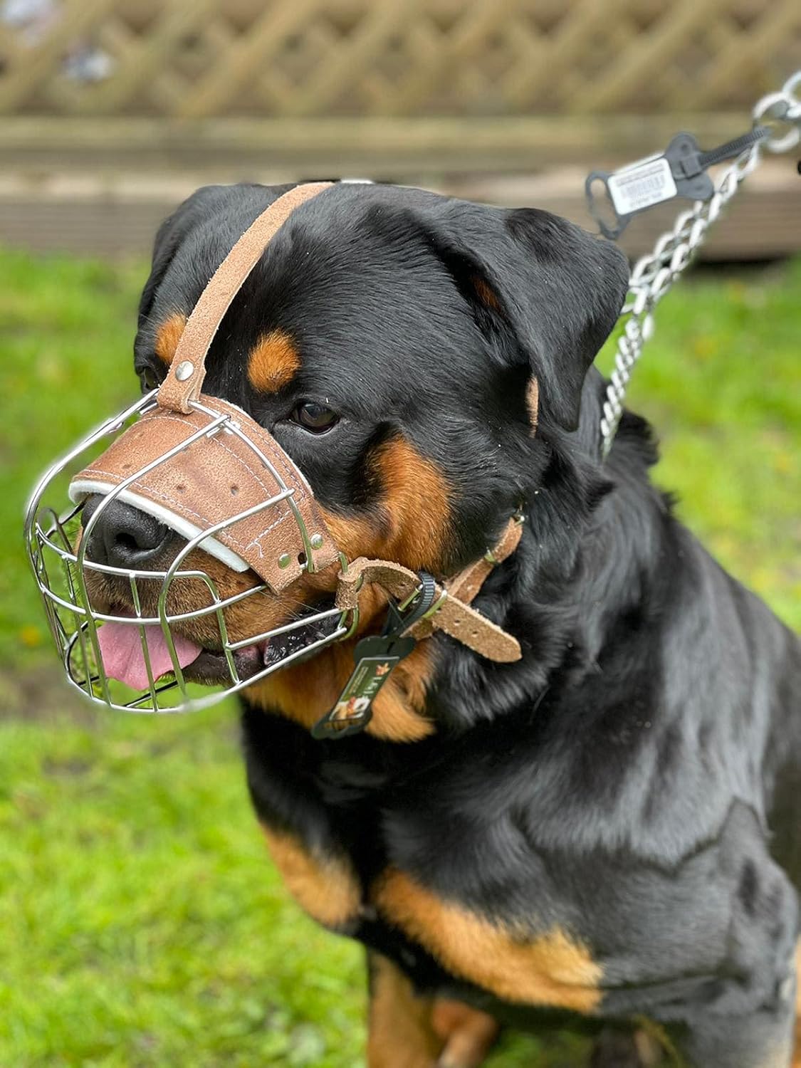 New and Improved Galvanized new model color "BLACK" black leather and wire covered with black rubber The muzzle has many advantages: no risk of freezing nose or tongue to metal parts muzzle rubber absorbs the impact force well insulated from adverse external factors a lifetime 50% The snout's upper part inside the muzzle is made of leather, but is also lined and padded with felt for the dog's comfort . Having trouble during vet or groomer visit? Get this muzzle and solve the problem Need reliable products recommended by Vets, Dog Trainers and Behaviorist? This muzzle is the professionals pick Looking for a solution to discourage your dog from biting, chewing and eating unwanted objects? No more dangerous rocks or sticks with this muzzle Are you looking for a long term solution? With this muzzle on your dog will breath freely, pant and drink water Does your dog need a muzzle that feels like he is not actually wearing it? This wire - basket dog muzzle can be worn while the dog is walking, playing or running. Tired of weak , one day plastic or nylon muzzles? This dog muzzle is made of chrome wire and leather - strength and durability The straps of this muzzle are adjustable and won't stretch . The most Effective way of measuring a dog for a muzzle is to check both the Length and Circumference of its snout. Length Measure the length of your dog's snout by placing the "zero" end of the measuring tape below the eyes. Stretch the measuring tape straight down the middle of your dog's snout and note the measurement at the very end of the dog's nose. Circumference Circumference around snout below eye line in inches or centimeters (Should Be Measured with mouth a little open) To the result should be added extra space to be able to freely open mouth
