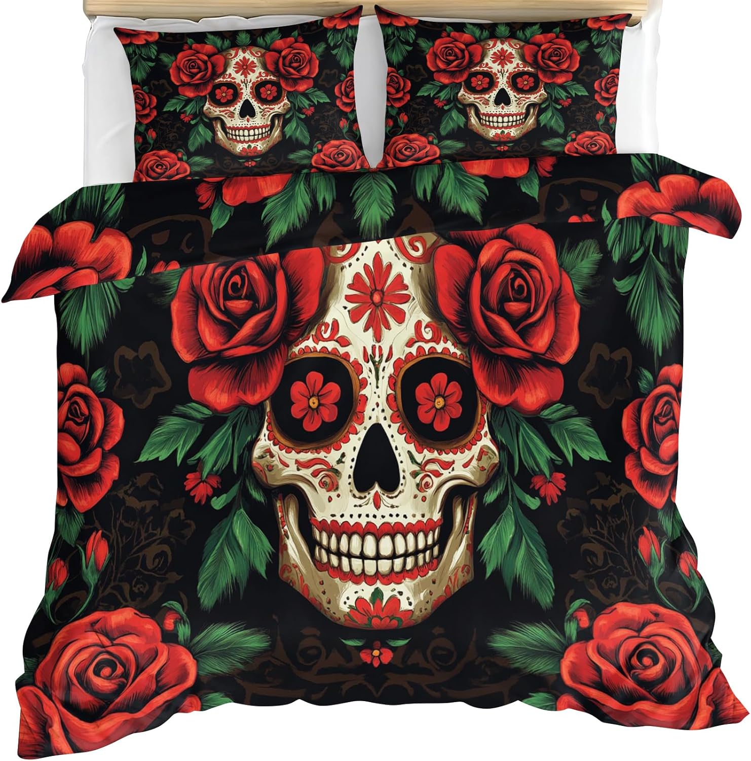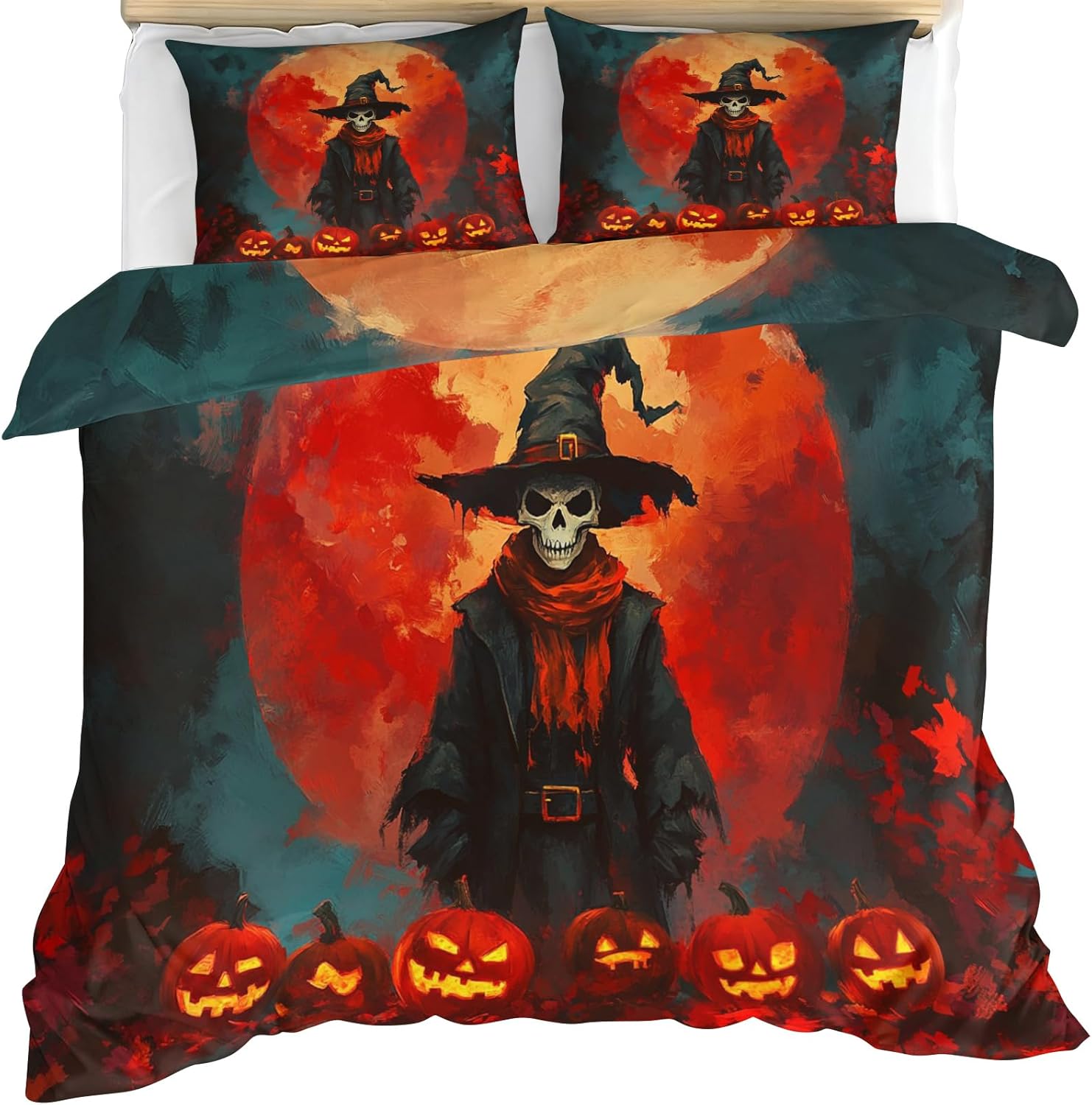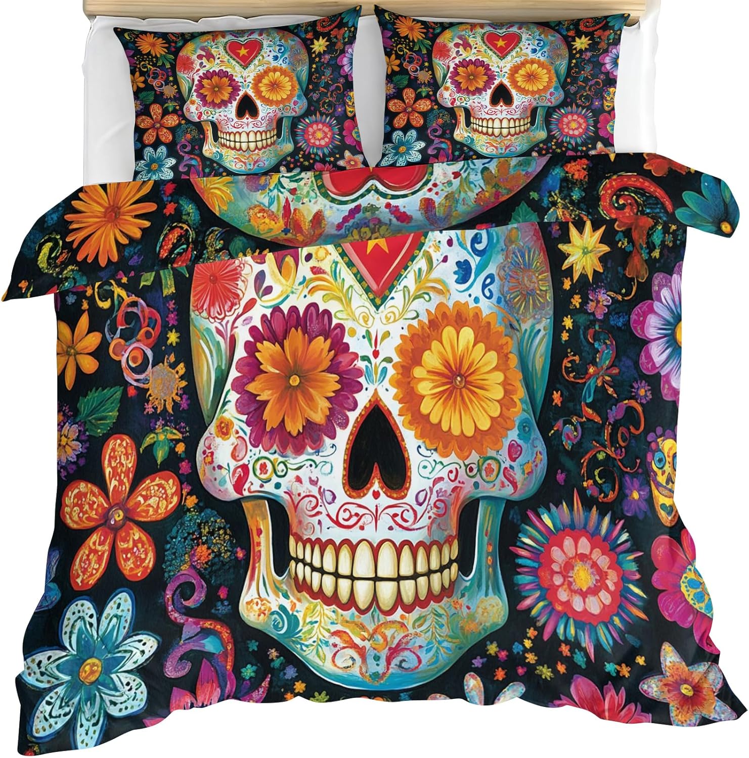 High quality home decor bedding set to complete your imagination of your homeFeatures:Beautiful personalize print bedding set makes your bedroom unique, satisfy all kinds of home decoration stylesPolyester microfiber fabric lightweight, cozy and textured,more durable than cotton, not easy to shrinkThe quilt cover is closed with a zipper to provide all-round protection and extend the life of the pillow and quilt4 corner ties help keep your down comforter in place and prevent it from slipping and enhance your sleep qualityBedding sets is suitable for all season to add much fashion and softness for bedroom, guest room, children room. It also can be used as a gift for everyone, every holiday and special occasion.Bedding sets is machine washable in cold water separately or with similar colors, can be tumble dry low and ironedSize / Weight:King size: 1 Duvet cover 104 x 98 in + 2 Pillowcases 20 x 36 in/3.00lbMaterial: PolyesterPacking List: Quilt cover x 1, Pillowcases x 2Tips:1: Does not include any comforter, pillow and sheet2: Please close zipper completely when washing for using longer3: Due to manual measurement, please kindly allow 1-2 cm discrepancy