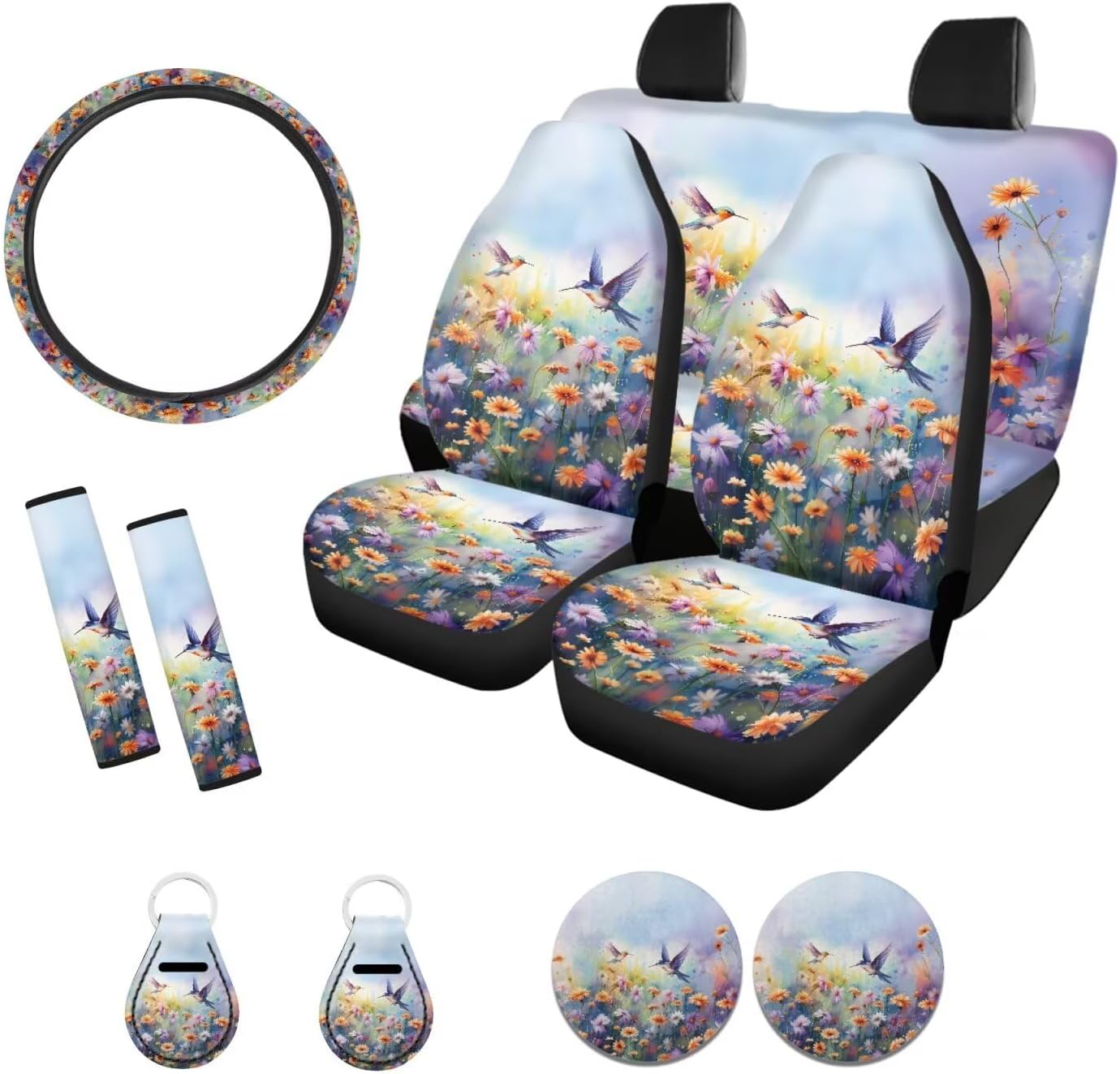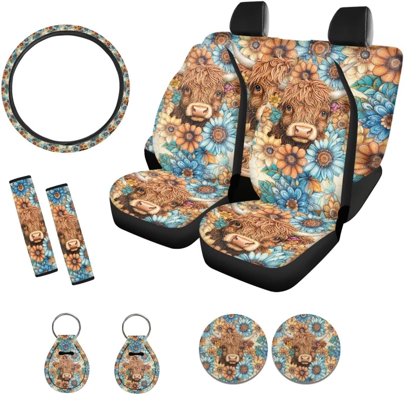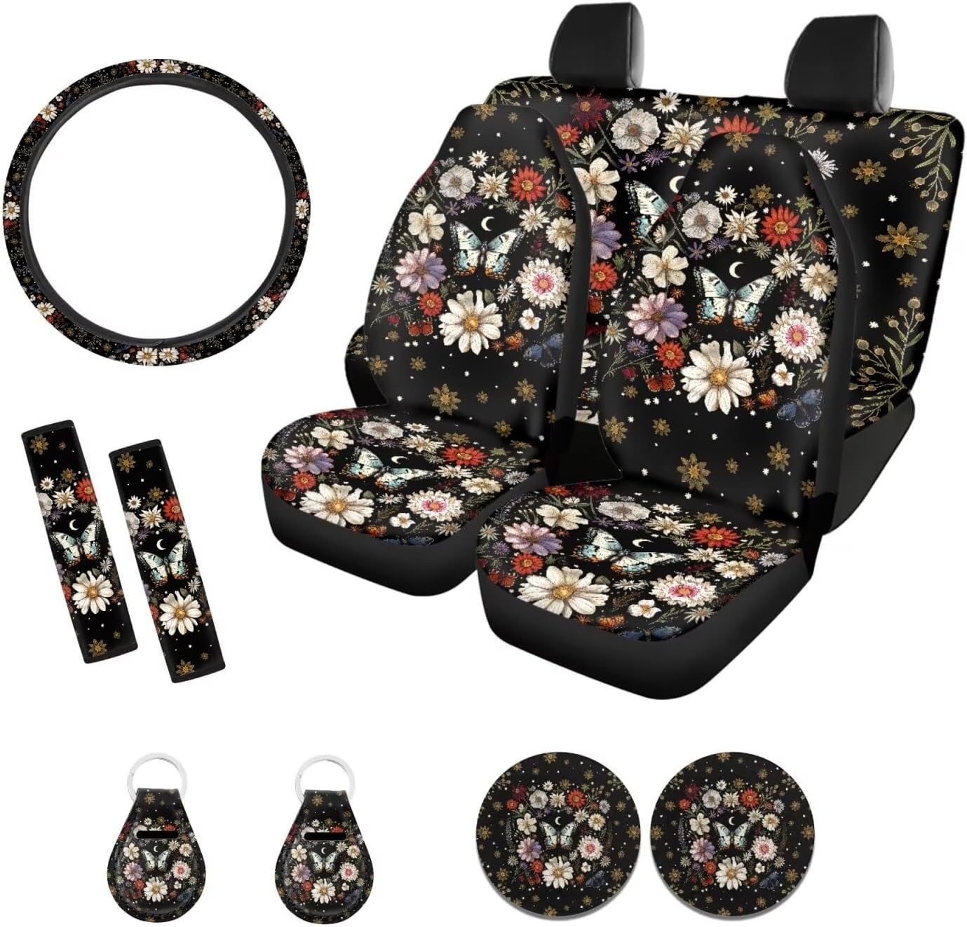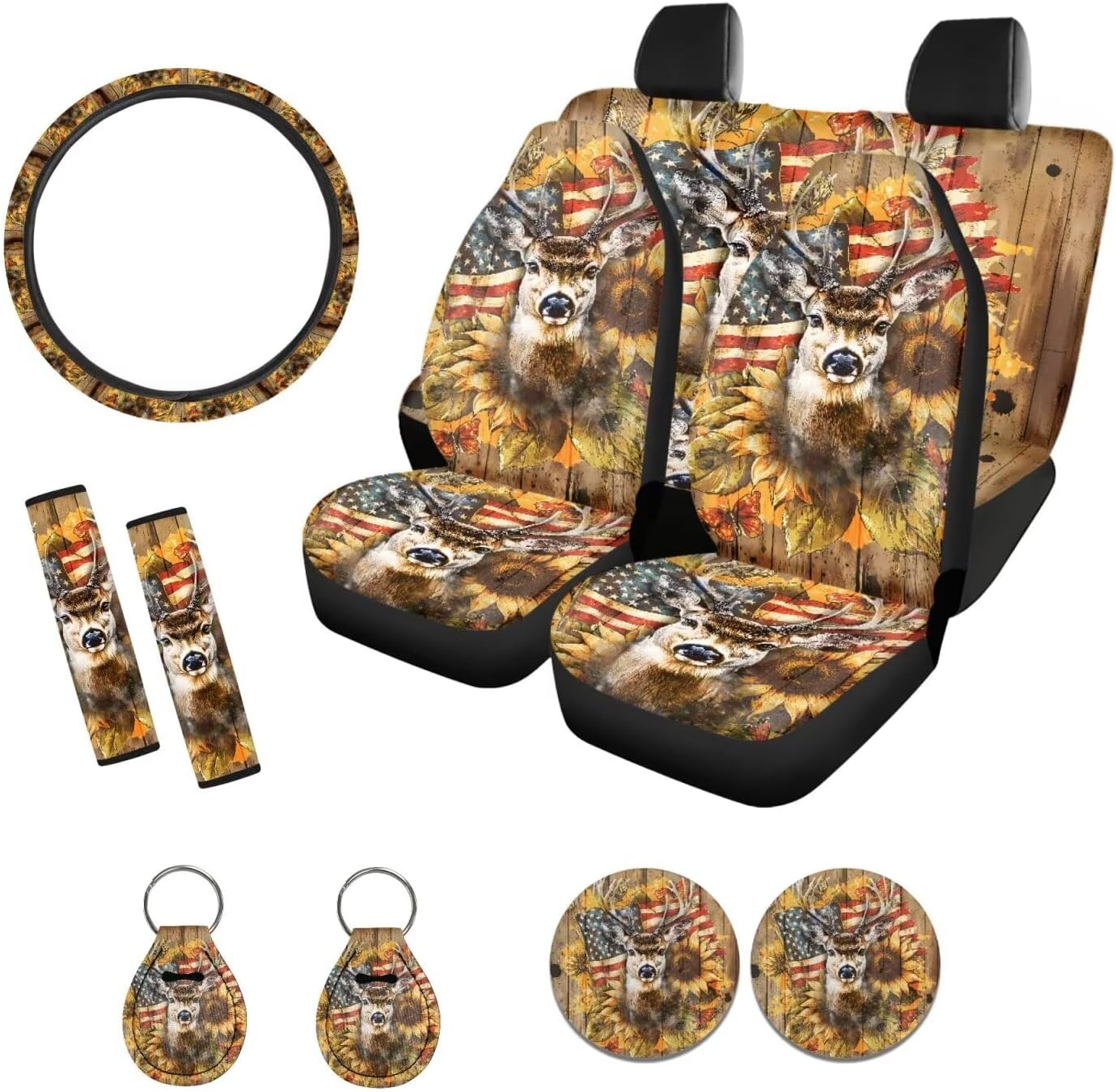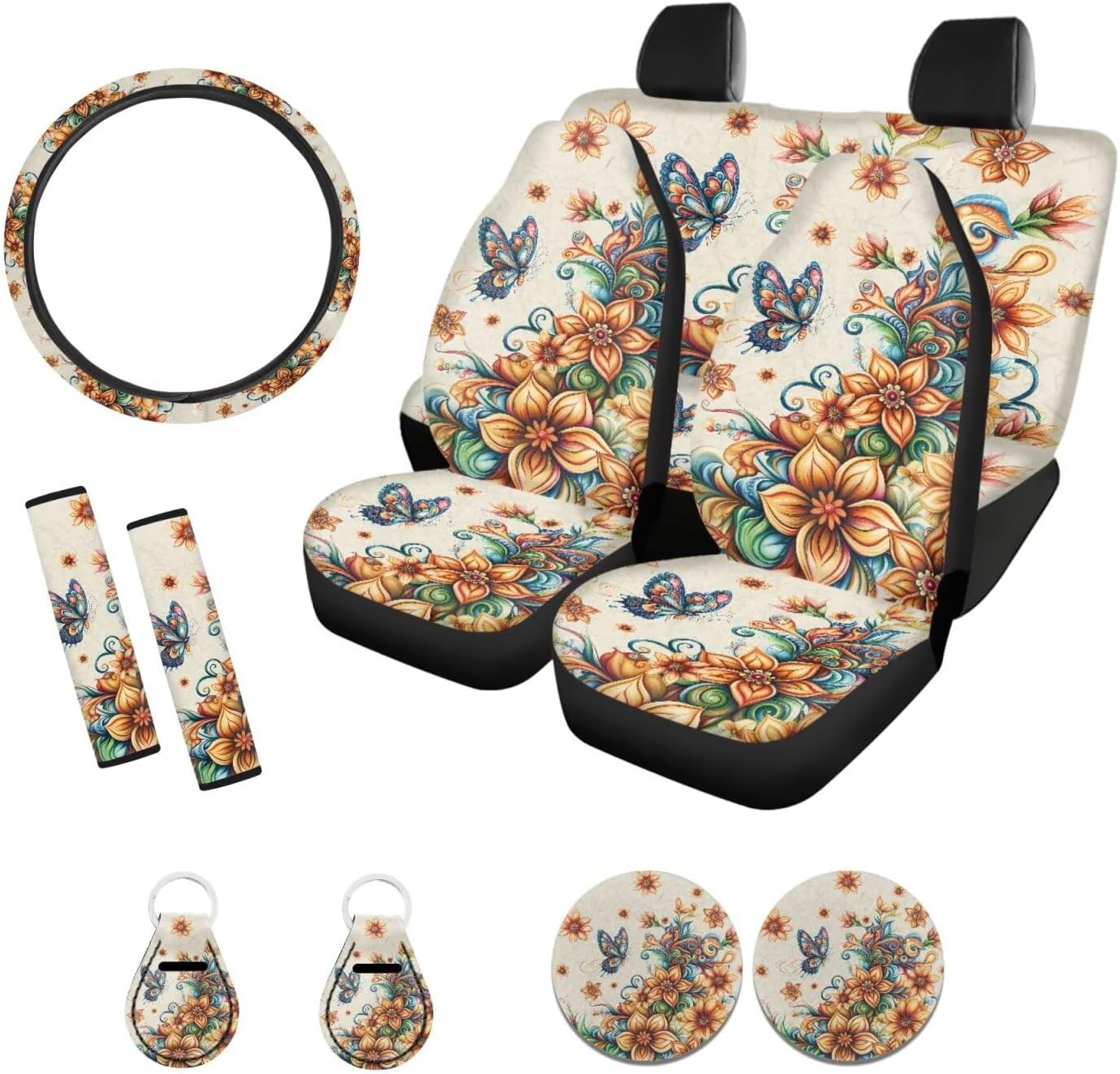 A variety of bright and novel patterns for you to choose, such as Boho,sunflower,tie dye,galaxy starry sky,animal,striped, leopard, butterfly, owl,sea turtle, rose,mushroom,camo,hunting deer,tribal ethnic style and so on.Bringing you visual enjoyment and making you feel comfortable while driving.Our car accessories are universal fit most cars, but not 100%, if you are not sure whether fit or not, please feel free to contact us.