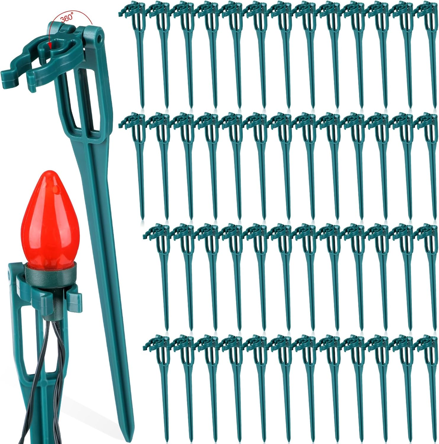 Features: Christmas Light Stakes: You will receive 50 pieces Christmas light stakes, and the size about 9.5 inch, they are designed for a range of Christmas lights, including C9, C7, mini lights, and rope lights. Employ the light stakes to elegantly arrange your landscape, add Christmas brilliance to your yard and lawns. Wide Application: Our Christmas light stakes are suitable for festive holiday lighting decorations on lawn, sidewalk, driveway ground, can hold all series lights(Including C7/C9 lights) like rope lights, fairy lights, mini lights, LED lights, also suitable for wedding, party decoration, or just illuminating your place all year round. Specifications: Material: plastic Color: black Size: 9.5inch Package includes: 50 x Christmas Light Stakes Notes: Manual measurement, please allow slight errors on size. The color may exist a slight difference due to different screen displays.