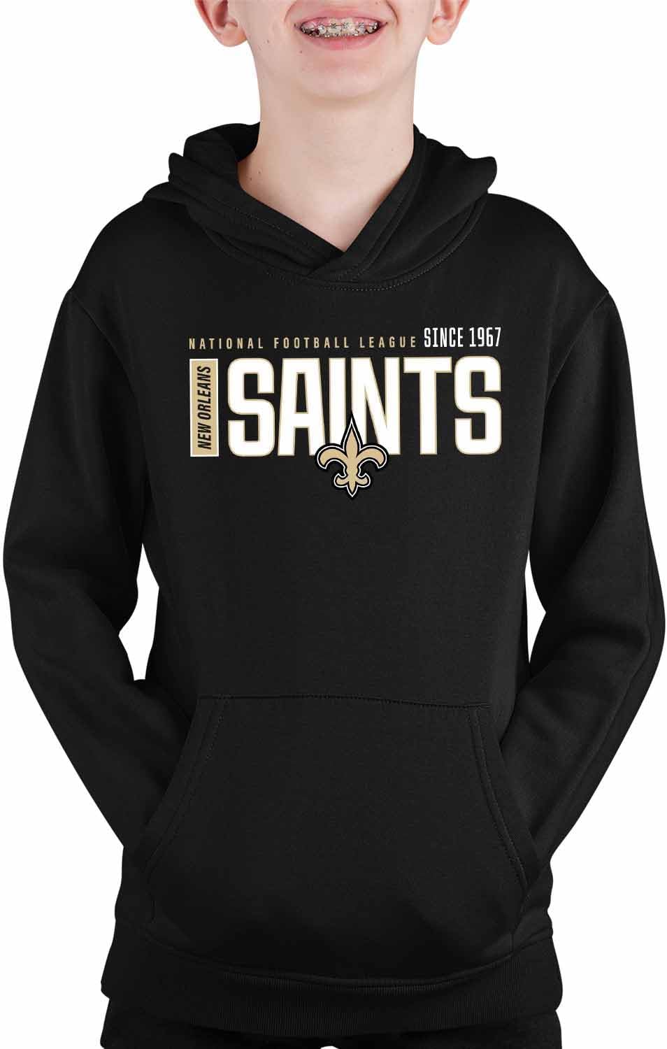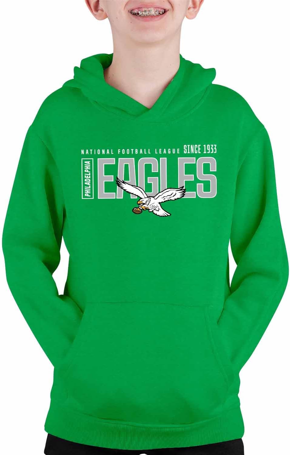 Hey there, young sports fans! Get ready to show off your team spirit with the Team Fan Apparel Youth Modern Endzone Football Fleece Hooded Sweatshirt! Made from a soft and cozy cotton polyester fleece, this sweatshirt is perfect for staying warm on game day or any day. The unisex design makes it suitable for both boys and girls, and its tag-less feature ensures ultimate comfort all day long. Featuring an original modern endzone design that proudly displays your team's colors and logos, this youth hoodie will be turning heads everywhere it's worn. The front pouch pocket and fleece hood will keep you warm on those cold game days as you cheer on your ! Just pull it on and go! So whether you're at the stadium or hanging out with friends, make sure you're representing your team in style with our NFL youth apparel. Printed and designed in the USA, have confidence your sweatshirt will last! Order now and get your future pro geared up to be the next super fan!