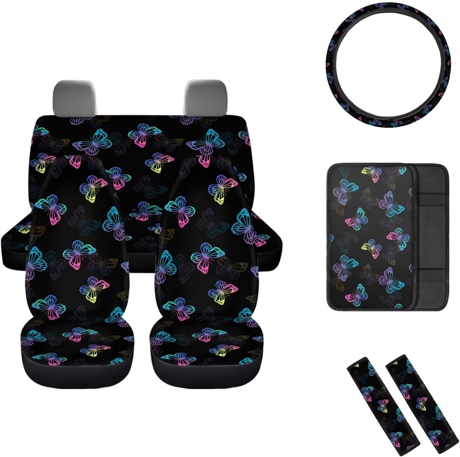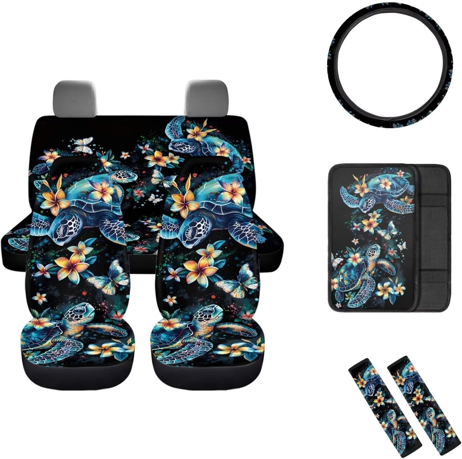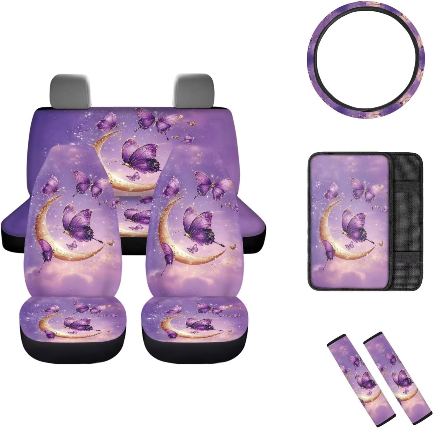 🔸About Tomeusey 8 Pcs Car Seat Covers Full Set for Women Men,4 Car Seat Cushion 1 Steering Wheel Cover 2 Seat Belt Pads 1 Center Console Cover -The car accessories seat covers full set is made of soft, breathable, and durable polyester microfiber fabric, which is elastic; -Designed to protect your car seats from damage and keep your car interior looking new; -Our car seat covers full set are quick to install, easy to disassemble, and easy to clean and dry; -The car seat covers full set adopts 3D printing design, with fashionable and diverse theme patterns, making it the preferred decoration kit for your car. -A set combination is more affordable than a single item purchase. 🎁This is also the best choice for various holidays, Christmas, New Year, or birthday gifts to give to friends, colleagues, and family. 🔸Package includes: 4 x Car Seat Covers Full Set (2 front seat covers + 1 rear backrest cover + 1 rear bottom bench cover) 1 x Steering Wheel Cover 2 x Auto Seat Belt Pads 1 x Center Console Cover 🔸【Washing Method】 It can be hand-washed & machine washable, do not soak for a long time. 🔸【Note】 Please kindly measure your car seats before purchase! 💡About Tomeusey Brand We are a company integrating production and sales. we provide a variety of color style products for you to choose, we are committed to bringing customers a new experience, and maximizing the experience of your life!