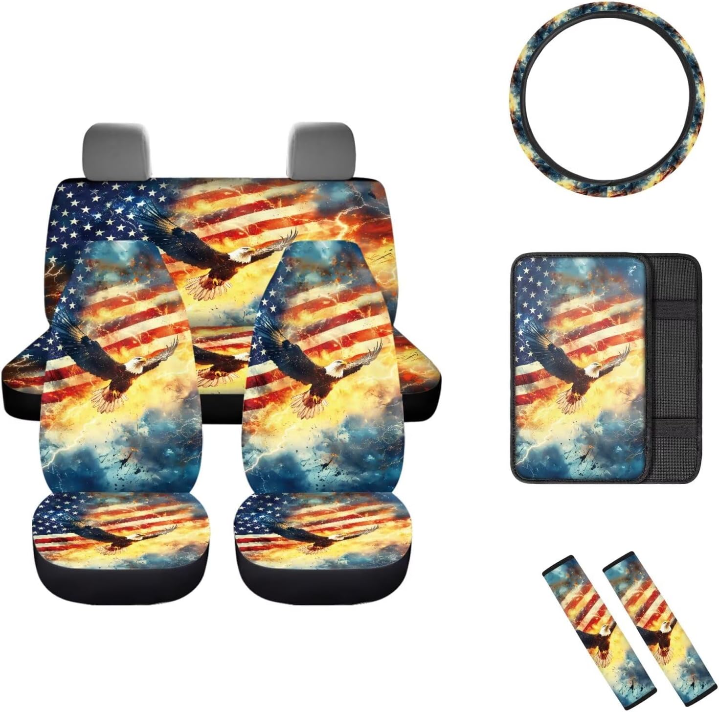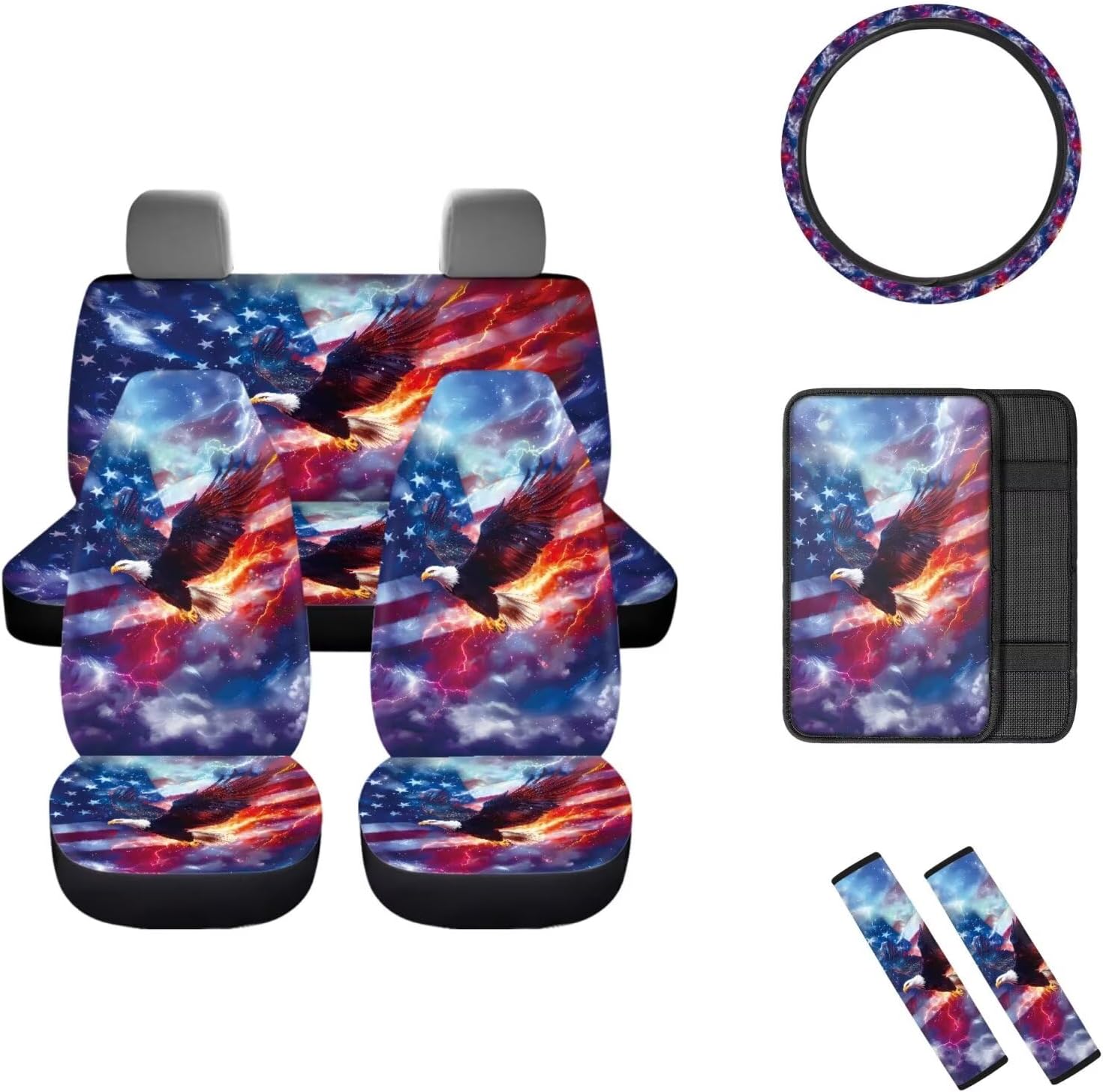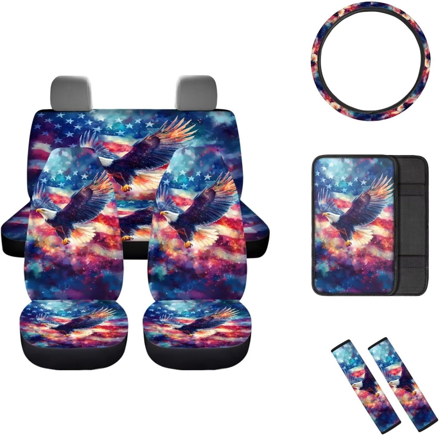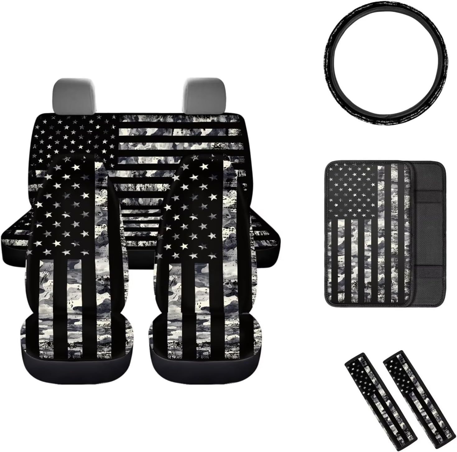 🔸About Tomeusey 8 Pcs Car Seat Covers Full Set for Women Men,4 Car Seat Cushion 1 Steering Wheel Cover 2 Seat Belt Pads 1 Center Console Cover -The car accessories seat covers full set is made of soft, breathable, and durable polyester microfiber fabric, which is elastic; -Designed to protect your car seats from damage and keep your car interior looking new; -Our car seat covers full set are quick to install, easy to disassemble, and easy to clean and dry; -The car seat covers full set adopts 3D printing design, with fashionable and diverse theme patterns, making it the preferred decoration kit for your car. -A set combination is more affordable than a single item purchase. 🎁This is also the best choice for various holidays, Christmas, New Year, or birthday gifts to give to friends, colleagues, and family. 🔸Package includes: 4 x Car Seat Covers Full Set (2 front seat covers + 1 rear backrest cover + 1 rear bottom bench cover) 1 x Steering Wheel Cover 2 x Auto Seat Belt Pads 1 x Center Console Cover 🔸【Washing Method】 It can be hand-washed & machine washable, do not soak for a long time. 🔸【Note】 Please kindly measure your car seats before purchase! 💡About Tomeusey Brand We are a company integrating production and sales. we provide a variety of color style products for you to choose, we are committed to bringing customers a new experience, and maximizing the experience of your life!