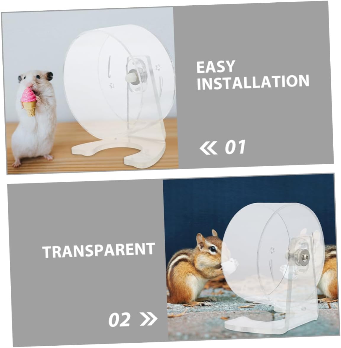 Package Include 1 x hamster running wheel Characteristics -Durability: crafted with durable materials, the wheel is built to last, maintaining its sleek and transparent look over time -Health-focused design: the spacious and ergonomic interior promotes natural movement, supporting your pet's physical health and preventing sedentary habits mice silent wheel -Color:Transparent -Product Info: Pet hamster running wheel -Silent technology: specially engineered for silent operation, this wheel ensures a peaceful environment, for nighttime use without interruptions small pet silent wheel -Material:Acrylic -Universal compatibility: designed to seamlessly fit into most small pet cages, this wheel provides a versatile and easy setup for pet owners hamster wheel with stand -Visibility: the transparent design offers an unobstructed view of your pet's playful moments, fostering a stronger bond and interactive experience Hamster Running -Size:28.00X22.00X12.70cm/11.00X8.65X4.99inGoods DescriptionSilent Exercise The transparent material allows for easy monitoring of your pet's activity, while the sturdy construction ensures stability during use.silent hamster exercise wheel for healthy habits and reducing boredom.hamster wheel with stand This silent running wheel is designed to provide a comfortable and engaging workout experience for hamsters, gerbils, and other small pets