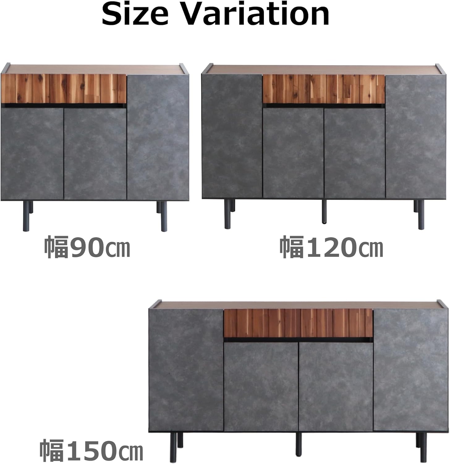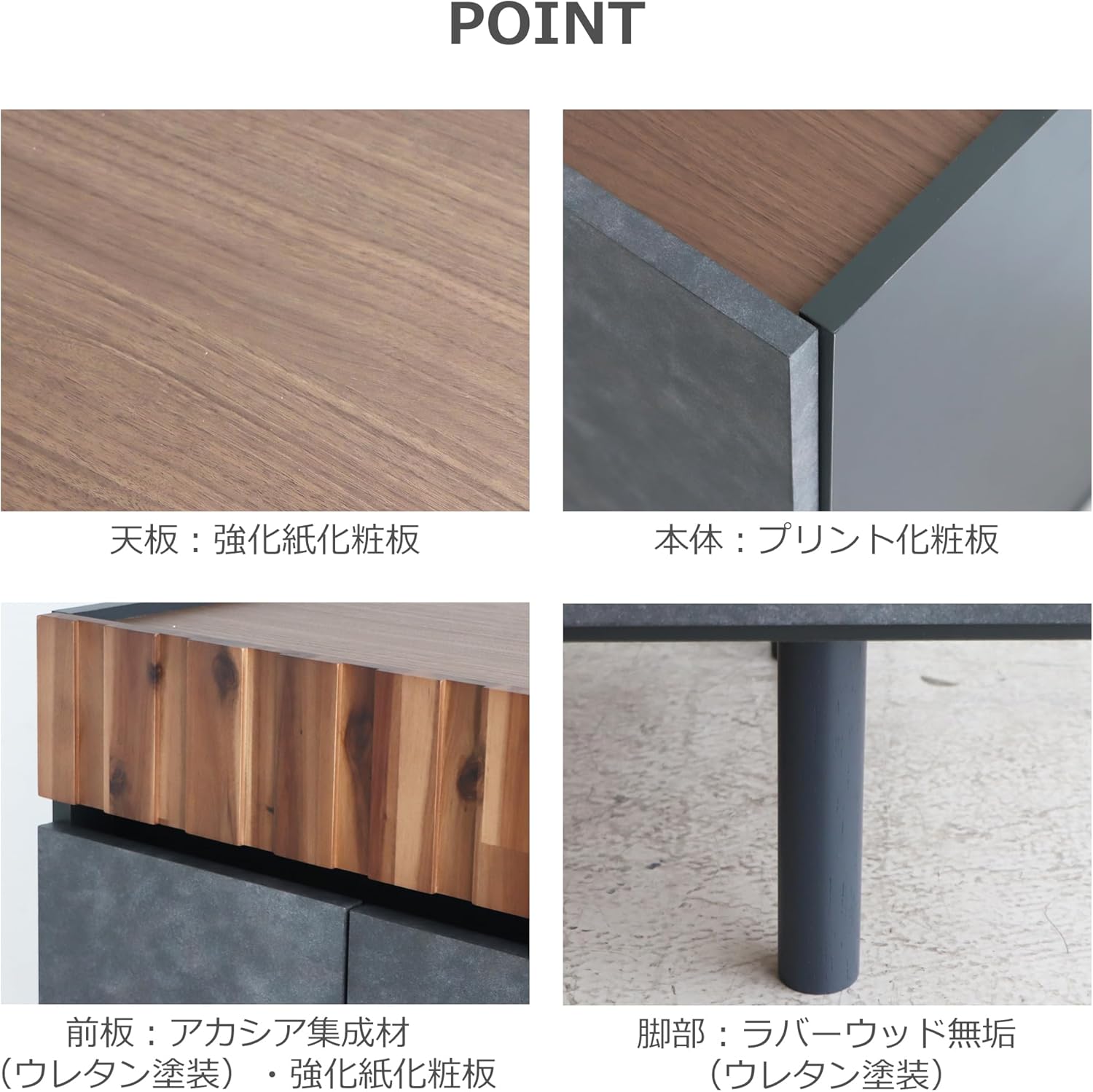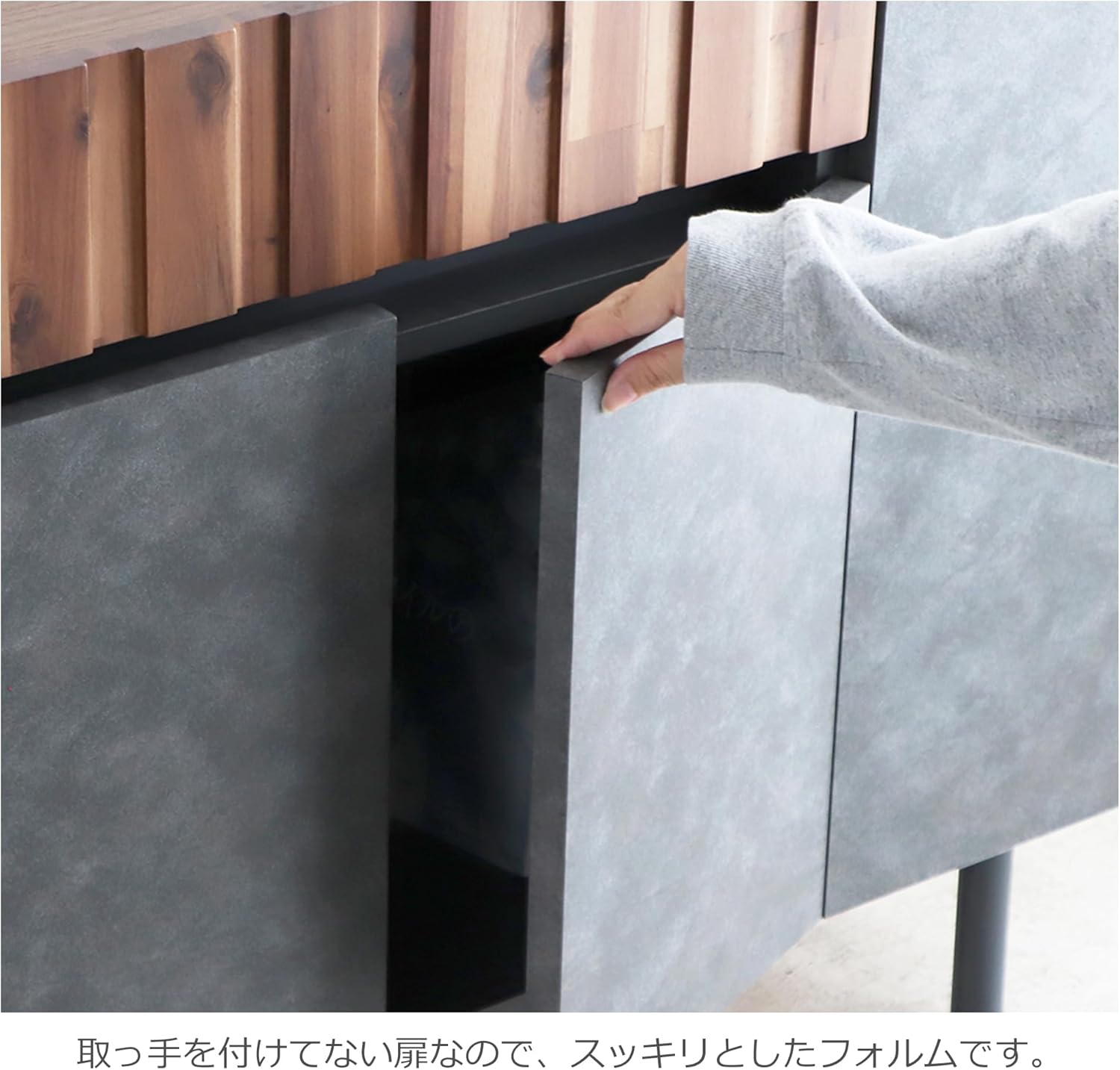 A cleat series that creates an exquisite modern look The design has been designed to enhance the beauty of the details and will enhance your space. The front plate has a realistic texture that is attractive with the acacia wood uneven and concrete. It has a luxurious storage capacity that is indispensable for modern space. Size (W x D x H): 35.4 x 15.7 x 30.0 inches (89.4 Material: Top Board: Reinforced paper veneer, Body: Printed veneer, Front: Acacia laminated wood (urethane coated), Reinforced paper veneer