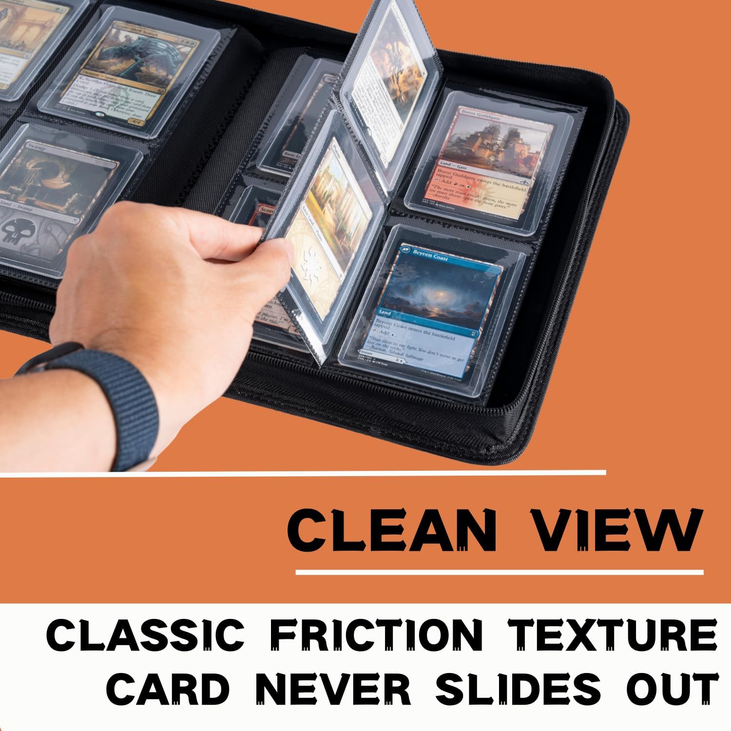 KUOOKING presents a versatile top loader binder designed for card collectors and gamers. Our binder is crafted from premium quality matter and features a sleek and stylish design that fits all types of card collections. Whether you collect trading cards, playing cards, or game cards like TCG, Baseball, Football, and other sports cards, our binder can hold up to 128 cards securely. With its compact size and lightweight design, it's perfect for travel and storage. Ideal for gift-giving, displaying, and organizing your collection, our top loader binder is a must-have accessory for all card enthusiasts.