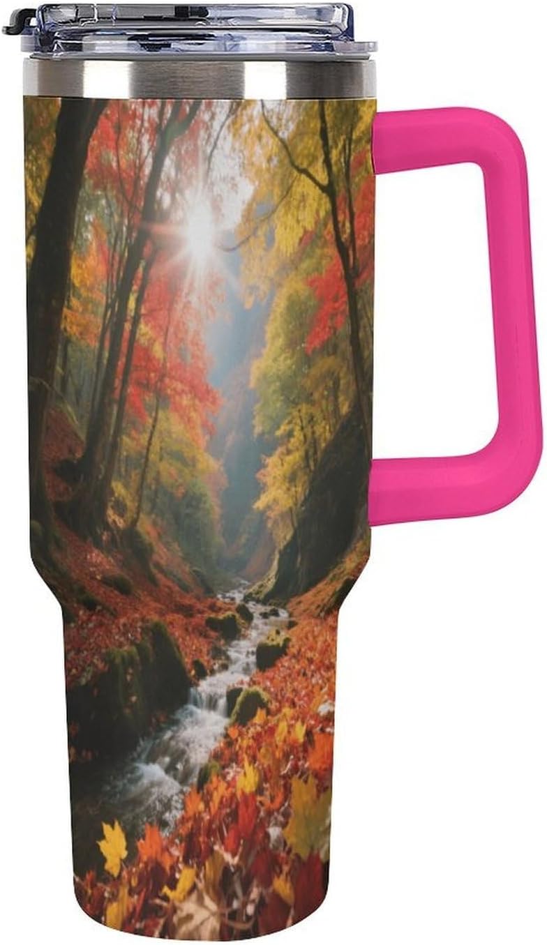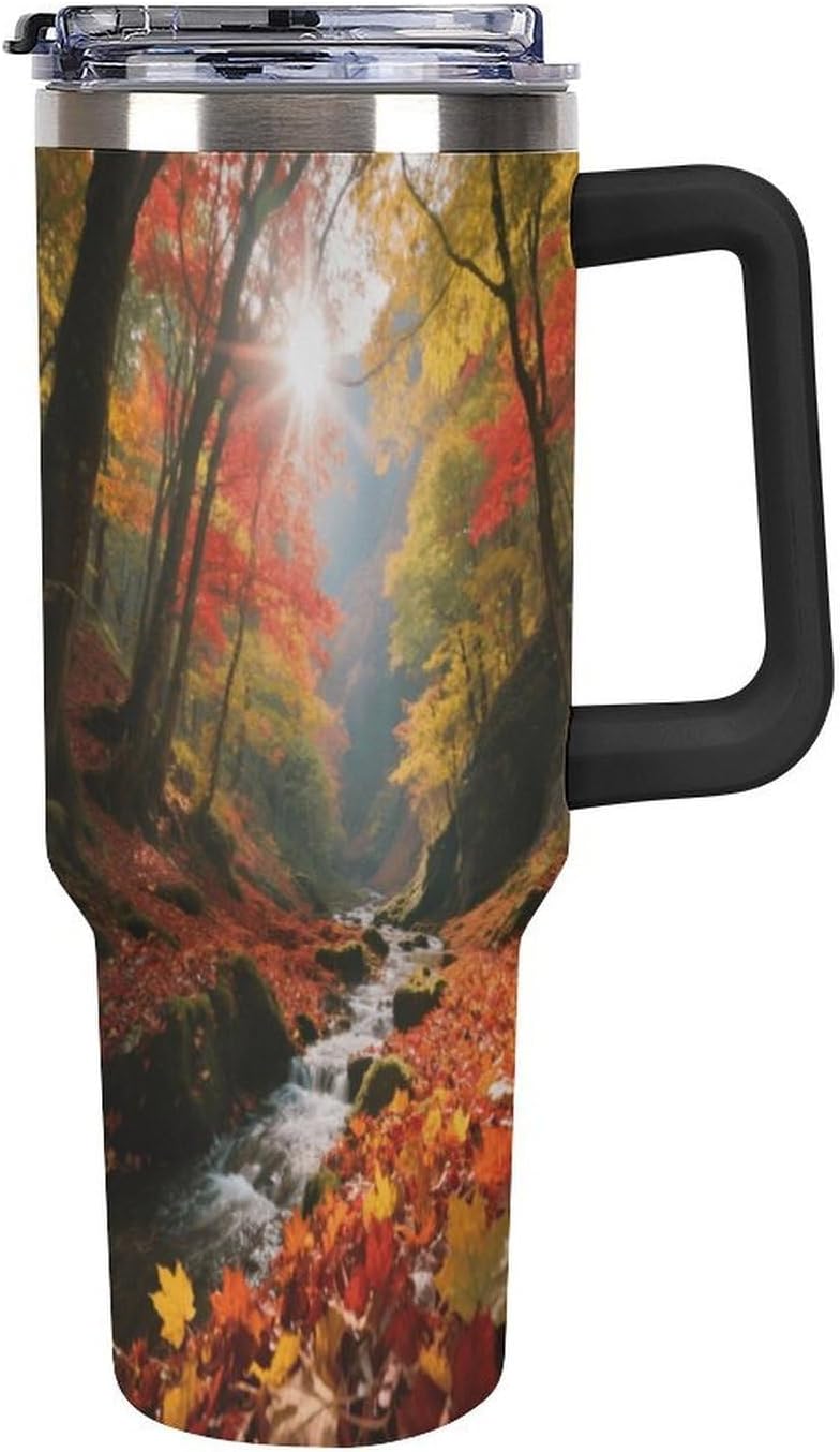 Whether you're on a long drive, a busy commute, or an outdoor adventure, staying hydrated is crucial. Our large-capacity car tumblers featuring the Forest Fallen Leaves pattern were developed with this need in mind. They're the perfect solution for on-the-go hydration, ensuring a smooth and comfortable journey. With an impressive 40-ounce capacity, this insulated stainless steel travel tumbler easily meets your frequent hydration needs, from your morning commute to your after-get off work workout or even a full-day road trip. Without constantly searching for water, you can focus on the road ahead and say goodbye to thirst. Whether you're sweating it out on a scorching summer day or sweltering in your car on a dry winter night, staying hydrated helps you perform at your best. We understand your appreciation for quality and aesthetics, and our car tumblers feature unique designs that complement any vehicle's interior, exuding understated elegance. More than just a practical tool, they're the perfect finishing touch, adding a touch of style to your vehicle's interior.