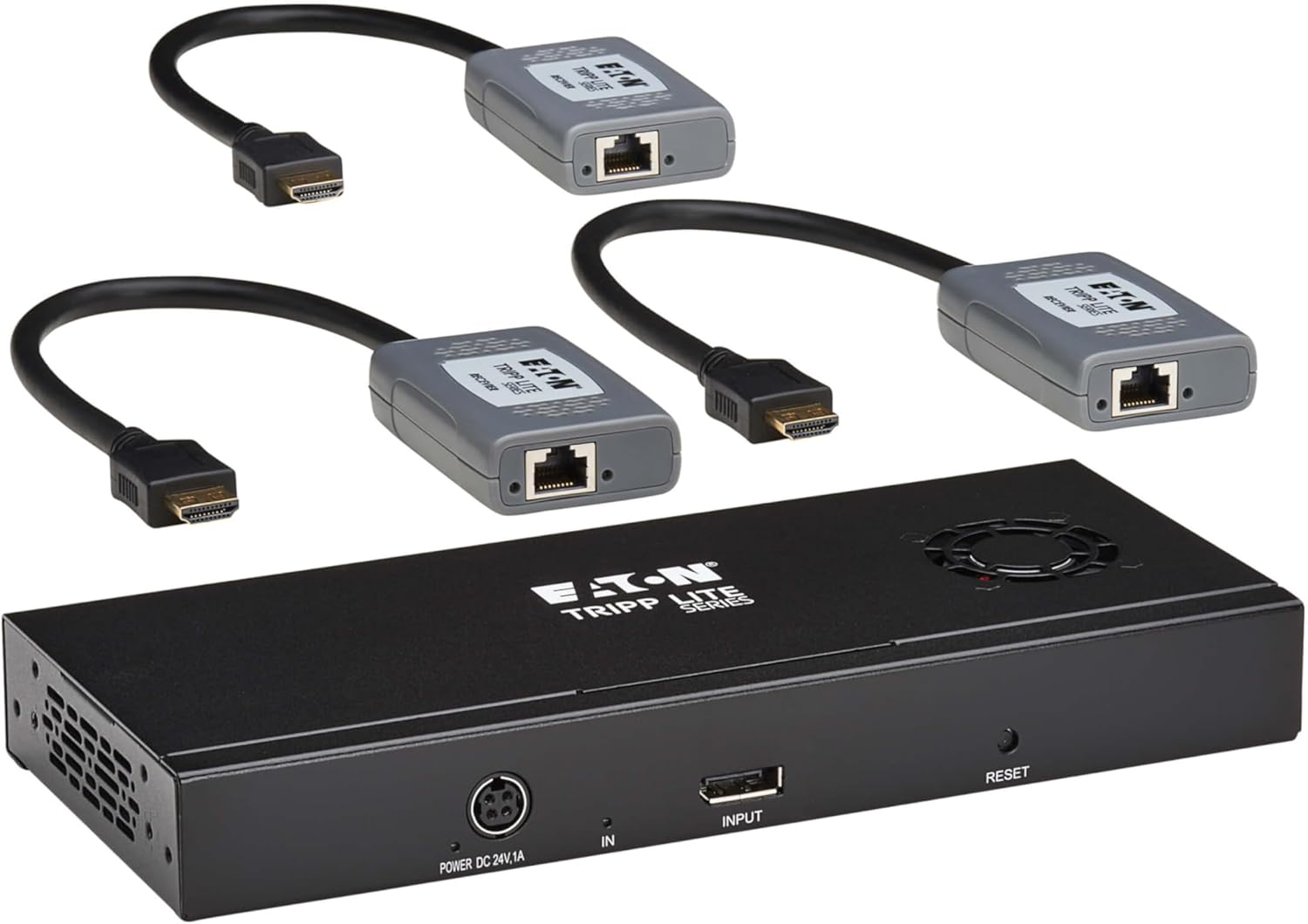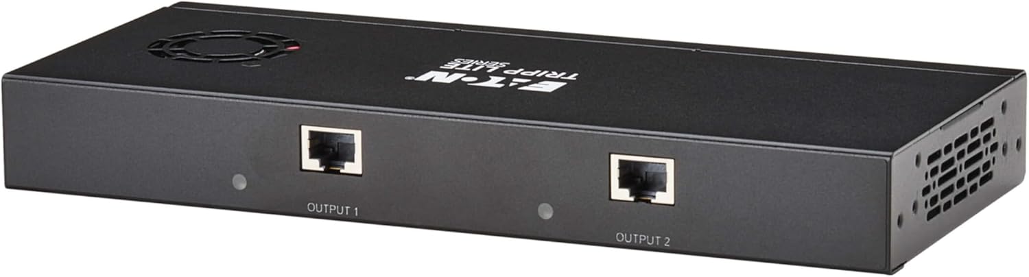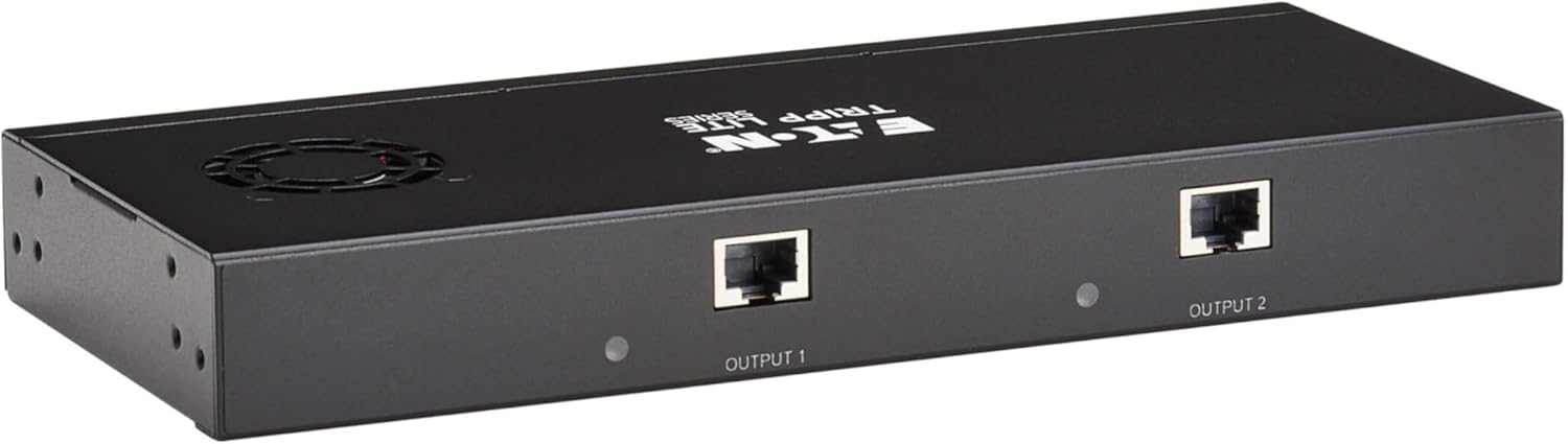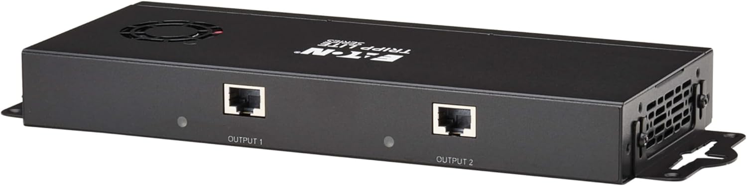 Connect up to 2 HDMI Monitors to Your DisplayPort Computer up to 230 ft. Away This multi-display splitter connects two 4K or 8K HDMI monitors, projectors or televisions to the DisplayPort output on your laptop or desktop computer. Recommended for digital signage in schools, churches, trade shows, hotels, office conference rooms, restaurants, bars and retail outlets, the B156E-002-H8K-K helps you create video walls, give audio/video presentations in front of large audiences or stream 4K/8K video to multiple locations. DisplayPort Multi-Stream Transport (MST) Allows Connection of Multiple Displays By connecting the DisplayPort input to a source that supports DisplayPort MST Mode, you may connect two monitors simultaneously. This allows you to display the same image on each monitor, extend your host desktop across both monitors or combine both monitors into one large display as a video wall. LED indicators let you know which monitors are receiving an AV signal. Transmits 8K Video Using Cat6 Cabling The B156E-002-H8K-K supports Ultra HD resolutions up to 3840 x 2160 at 60 Hz per monitor with 12-bit Deep Color and 2-channel LPCM audio in extended desktop and mirror modes. In video wall mode, it supports expanded resolutions, including 7680 x 2160 at 60 Hz (2x1 vertical configuration) and 3840 x 4320 at 60 Hz (1x2 horizontal configuration). The B156E-002-H8K-K is compliant with HDMI 2.0 standards and is backward compatible with previous versions. Note: When in video wall mode, it is recommended to use monitors of the same brand and model to ensure full functionality. Supports HDR and 4:4:4 for the Sharpest Video Possible The B156E-002-H8K-K supports HDR (High Dynamic Range), providing a wide range of vibrant colors with richer contrast, brighter whites and deeper blacks that pop on your 4K display. HDCP 2.3 encryption allows you to stream 4K content with no complications. This extender kit also supports uncompressed 4:4:4 chroma subsampling for top-level PC gaming or using your HDTV as a PC monitor. Built-In PoC Technology Provides Receiver Power to Avoid Bulky External Power Bricks Power over Cable (PoC) technology powers the remote receivers over Cat6 cable. LEDs on both the transmitter and receivers will light up to indicate the system is receiving power and a signal is being transmitted. PoC lets you avoid the hassle of bulky power bricks and gives you the freedom to place the receivers away from an AC outlet. Designed for Plug-and-Play Convenience Just connect your source device to the splitter with a user-supplied DisplayPort cable up to 15 feet (4.6 meters). User-supplied Cat6 cables connect the splitter and the pigtail receivers, which connect directly to the monitors' HDMI input. No software or drivers are needed. Plug the splitter's external power supply into a compatible AC outlet. Four international plug adapters (North America, Europe, U.K., Australia) are also included. Rugged metal enclosure comes with detachable brackets for mounting on a level surface. TAA-Compliant for GSA Schedule Purchases The B156E-002-H8K-K is compliant with the Federal Trade Agreements Act (TAA), which makes it eligible for GSA (General Services Administration) Schedule and other federal procurement contracts.