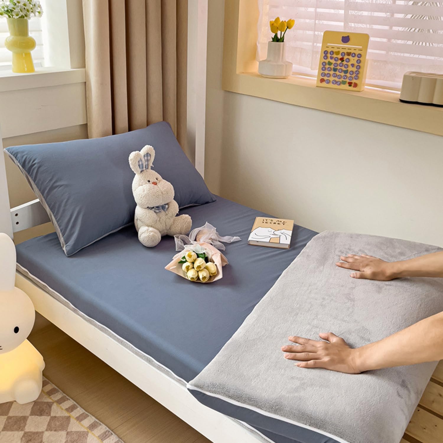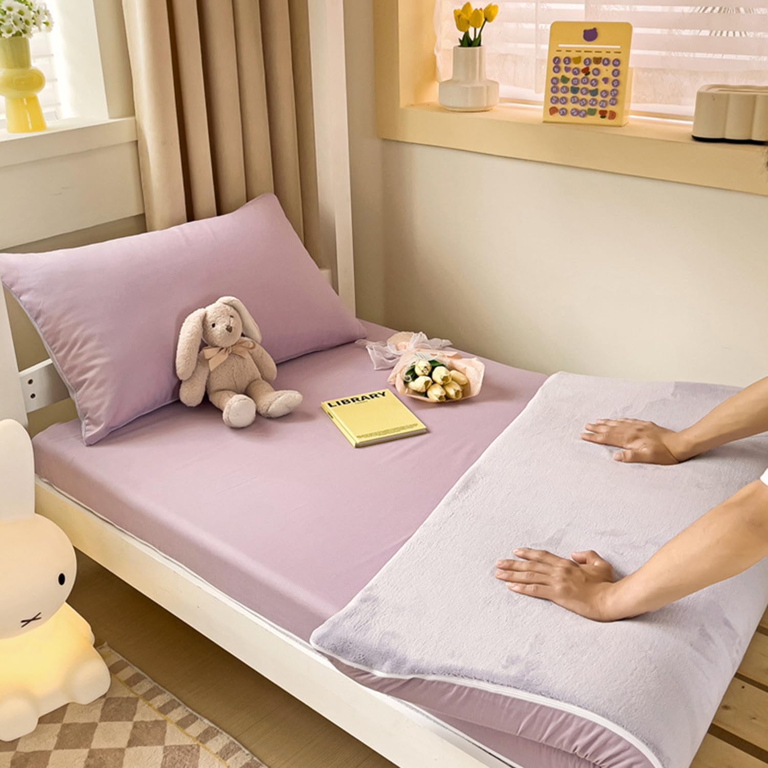 - [DOUBLE-SIDED DESIGN]: Floor mattress cover is A/B both sides can be used, A side is cotton fabric, B side is milk velvet fabric, spring and summer with high-count high-density cotton, autumn and winter with thickened warm milk velvet, two kinds of fabrics, double-sided design