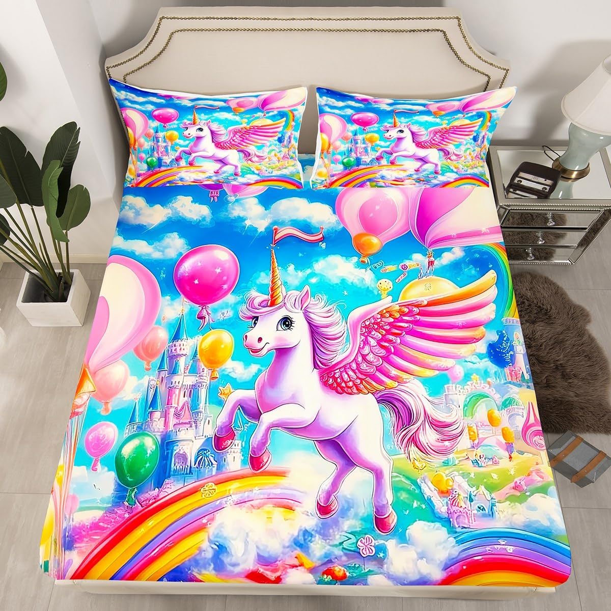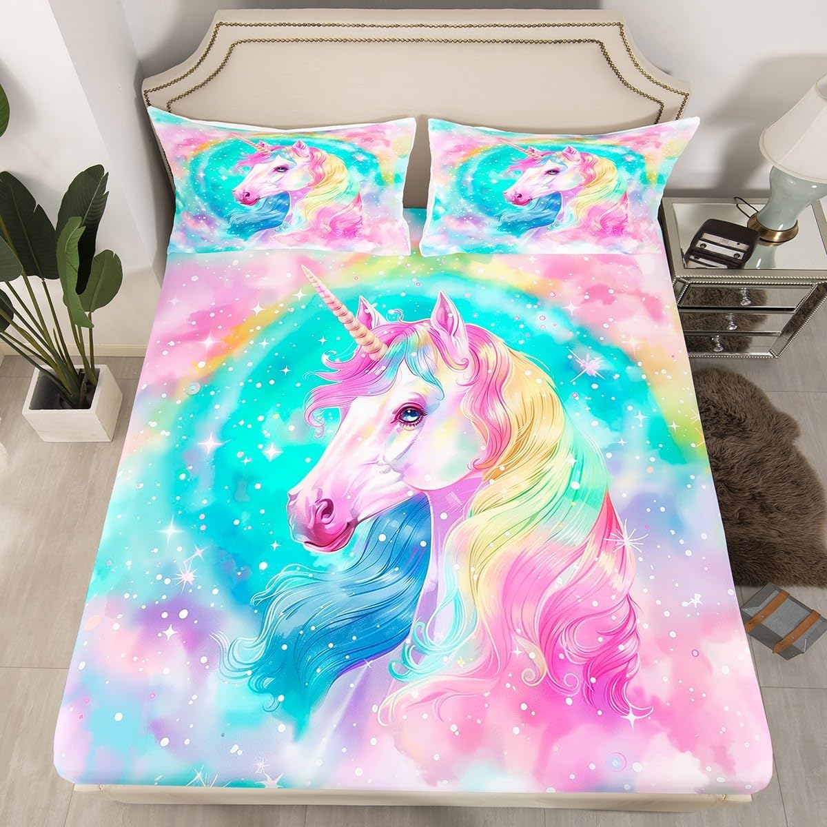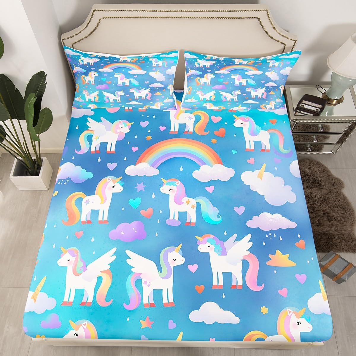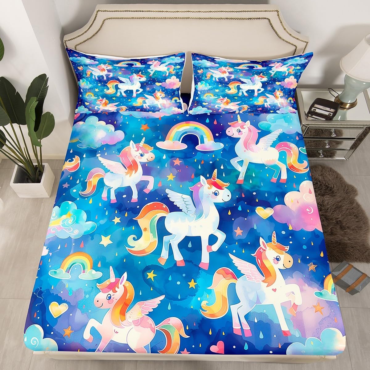 Package Include:fitted sheet,Pillowcase.No flat sheet or top sheet. Fitted sheet set pattern bedding set, simply decorating your rooms any time you want, bringing you fresh feel for year round use. Made from polyester,the sheet set offers long lasting strength,anatural resistance to shrinking and a noticeably soft hand feel. Size Information: Twin size : 1 Fitted Sheet 39"W x 75"L x 16"H ,99 x 190 x 41cm , 1 pillowcase 20" x 30", 51x75cm . Full size : 1 Fitted Sheet 54"W x 75"L x 16"H ,137 x 191x 41cm ,2 pillowcases 20" x 30", 51 x 75cm . Queen size : 1 Fitted Sheet 60"W x 80"L x 16"H ,152 x 203x 41cm ,2 pillowcases 20" x 30", 51 x 75cm . Personalize your bedroom: Beautiful design and colorful print, makes your bedroom unique and brings you a wonderful dream. Washing instructions: Machine wash separately in cold water,hang dry, do not bleach. Occasion: The soft Fitted Sheet bedding sets designed for Children ,Adult, Men, Women, Teens. This Fitted Sheet set is also suitable for full seasons, Spring, Summer, Autumn and Winter.