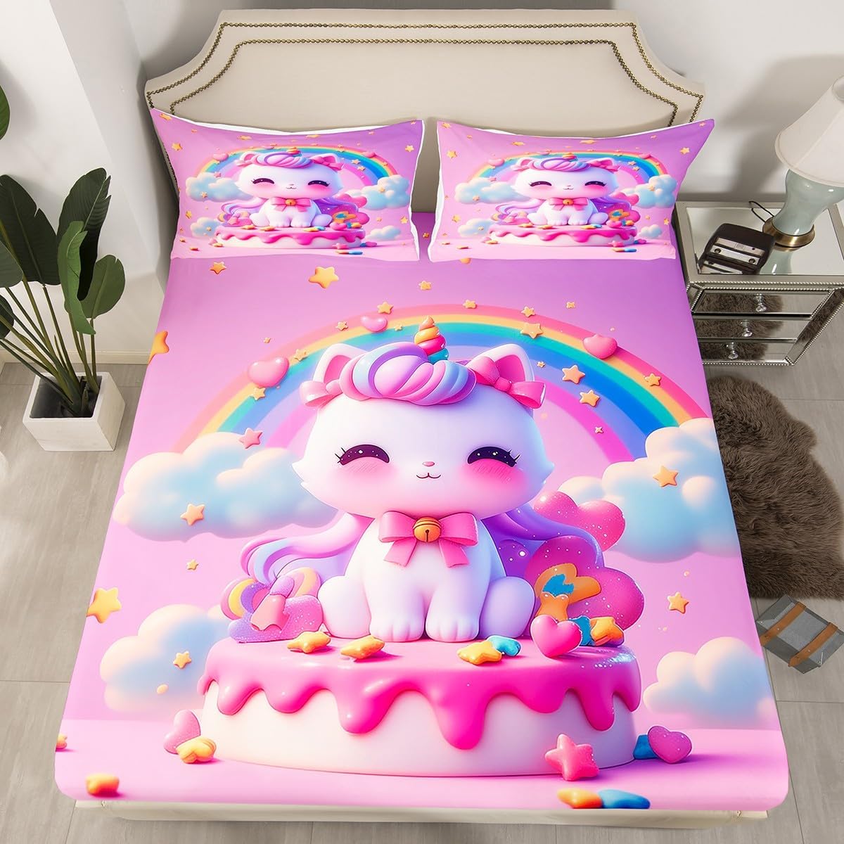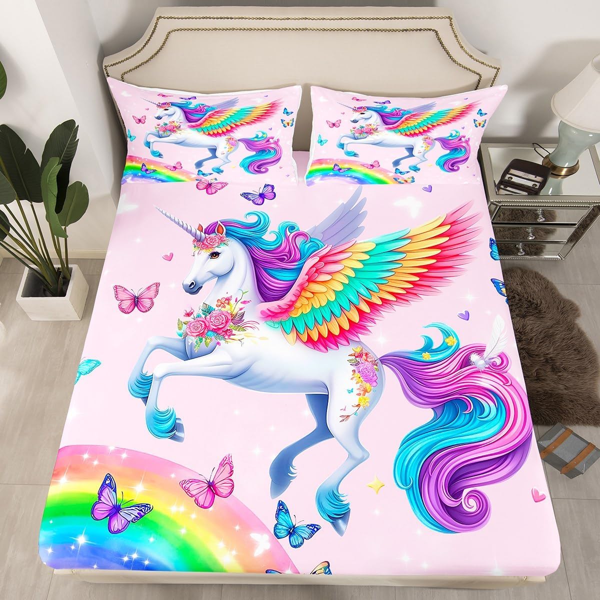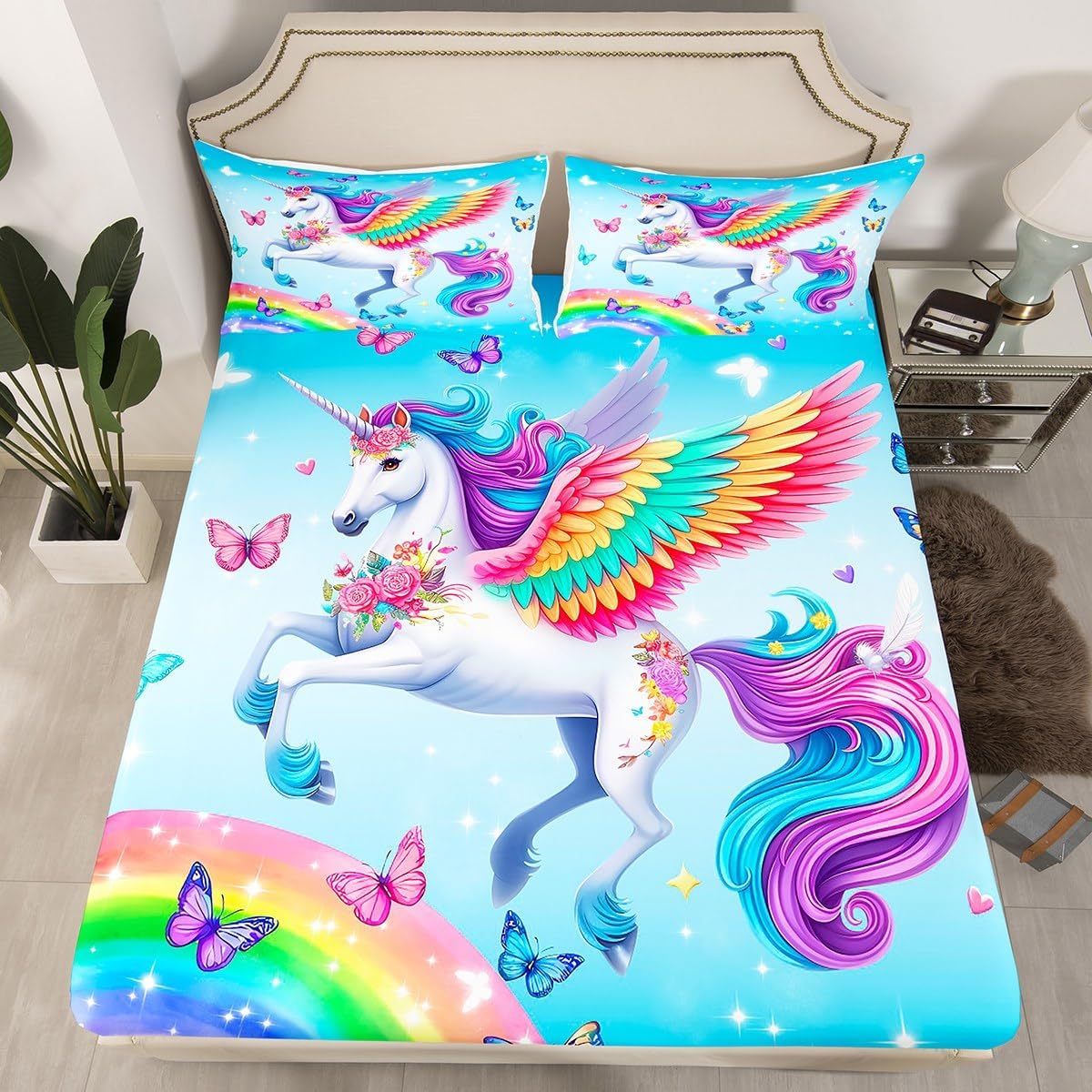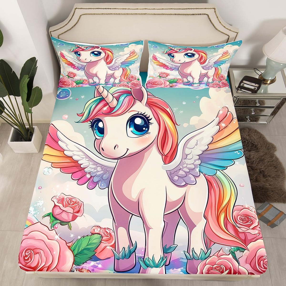 Package Include:fitted sheet,Pillowcase.No flat sheet or top sheet. Fitted sheet set pattern bedding set, simply decorating your rooms any time you want, bringing you fresh feel for year round use. Made from polyester,the sheet set offers long lasting strength,anatural resistance to shrinking and a noticeably soft hand feel. Size Information: Twin size : 1 Fitted Sheet 39"W x 75"L x 16"H ,99 x 190 x 41cm , 1 pillowcase 20" x 30", 51x75cm . Full size : 1 Fitted Sheet 54"W x 75"L x 16"H ,137 x 191x 41cm ,2 pillowcases 20" x 30", 51 x 75cm . Queen size : 1 Fitted Sheet 60"W x 80"L x 16"H ,152 x 203x 41cm ,2 pillowcases 20" x 30", 51 x 75cm . Personalize your bedroom: Beautiful design and colorful print, makes your bedroom unique and brings you a wonderful dream. Washing instructions: Machine wash separately in cold water,hang dry, do not bleach. Occasion: The soft Fitted Sheet bedding sets designed for Children ,Adult, Men, Women, Teens. This Fitted Sheet set is also suitable for full seasons, Spring, Summer, Autumn and Winter.