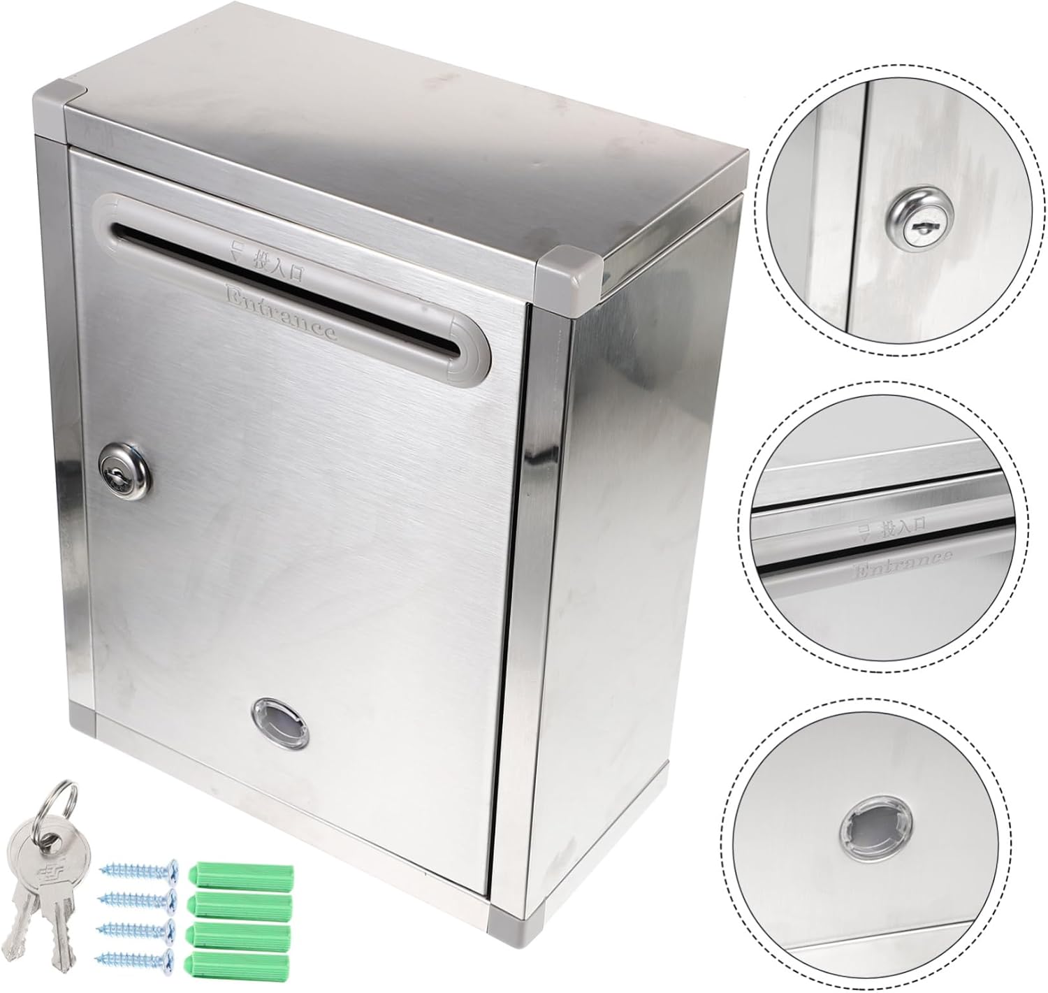 Package List 1 x Mail Box Features - Size: 27.00X21.00X11.00cm/ 10.61X8.25X4.32in Rust-proof Mailbox -Material: Stainless steel Rust-proof Outdoor Mailbox -Color: Silver Mailbox - Made of stainless steel, the letter box is durable with looking Metal Mailbox. - The simple design makes it more unique and stylish Practical Mailbox - It can also be used as photo prop Rust-proof Mailbox Outdoors - It can wall ornament for your home Stainless Steel Mailbox - Suitable for solid or doors, no worries to use Mailbox OutdoorsGoods DescriptionMetal Mailbox Made of stainless steel, the post box is durable with looking.Stainless Steel Mailbox The simple design makes it more unique and stylish.Rust-proof Mailbox Designed to fit panel, timber, aluminium, composite doors or walls.Practical Mailbox It can wall ornament for your home