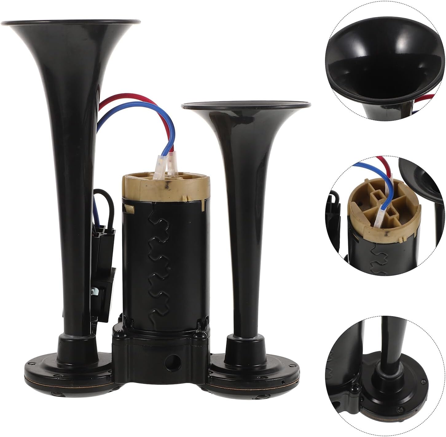 Package List 1 horn Features -Easy installation: the integrated design simplifies the installation process, making it suitable for cars, trucks, and motorcycles without hassle car air horn kit -Material:Zinc alloy, ABS -Size:20.50X15.50X8.00cm/8.06X6.09X3.14in -High decibel output: emitting a powerful 135 decibels, this horn ensures your presence is known, significantly improving road horns loud -Suitable for cars: specifically designed for cars, this horn offers a distinctive sound, enhancing your vehicle's character airhorn for boat -Universal fit: designed to fit a variety of vehicle brands and models, this horn caters to the needs of a wide range of vehicle owners car horn -Color:Black -Product Info:Electric air speaker -Electric operation: the electric air horn design means no need for an external , providing straightforward and dependable solution train horn kit for truckGoods Descriptionmarine air horn Suitable for both urban and rural settings, it enhances your vehicle's safety by making sure you're heard.electric air horn The installation process is straightforward, allowing you to quickly upgrade your vehicle's horn system.airhorns horn loud Whether you're driving a car, truck, or motorcycle, this electric air horn provides a powerful 135-decibel blast that attention