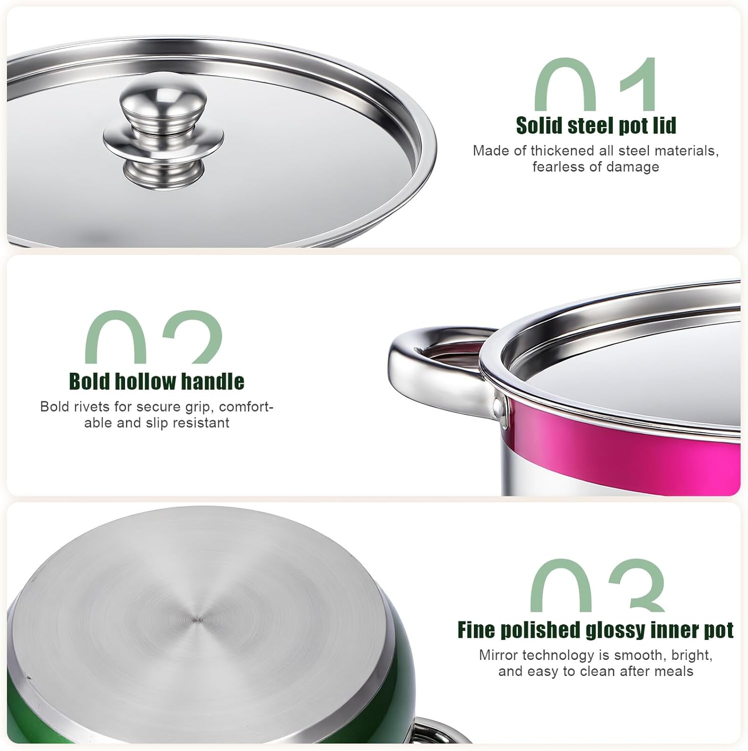 Package List 4 x stainless steel pots Characteristics -Multistove compatibility: suitable for induction cooktops, ceramic stoves, and gas burners, providing flexibility for various cooking methods pot stainless steel -Product Info:Cookware Set -Color:Assorted Color induction compatible cookware -Quick heating: engineered for rapid and uniform heat conduction, this cookware set helps you cook meals efficiently while preserving flavors cooking utensils stainless steel -Size:23.50X23.50X10.50cm/9.24X9.24X4.13in kitchen pots -Size:21.50X21.50X10.00cm/8.45X8.45X3.93in induction pots -Comfortable grip: ergonomically designed handles stay cool to touch, ensuring safe and comfortable handling during meal preparation steel pot -Stainless steel: crafted with sturdy stainless steel, this cookware set is easy to clean and maintains its shine, providing a reliable solution for everyday cooking stainless steel cooking pot -Size:19.50X19.50X9.00cm/7.66X7.66X3.54in stainless pots -Size:25.50X25.50X11.70cm/10.02X10.02X4.60in induction cooktop pots -Material:Stainless steel cookware for induction cooktop -Stylish and practical: the polished finish adds a touch of sophistication to your kitchen, ideal for both personal use and gifting occasions steel potsGoods Descriptioninduction cookware The cookware set includes various sizes of pots, versatile for different cooking needs.pot stainless steel This stainless steel cookware set is compatible with induction cooktops, ensuring even heat distribution for perfectly cooked dishes.induction cooktop pots The ergonomic handles provide a comfortable grip, making it easy to use while cooking
