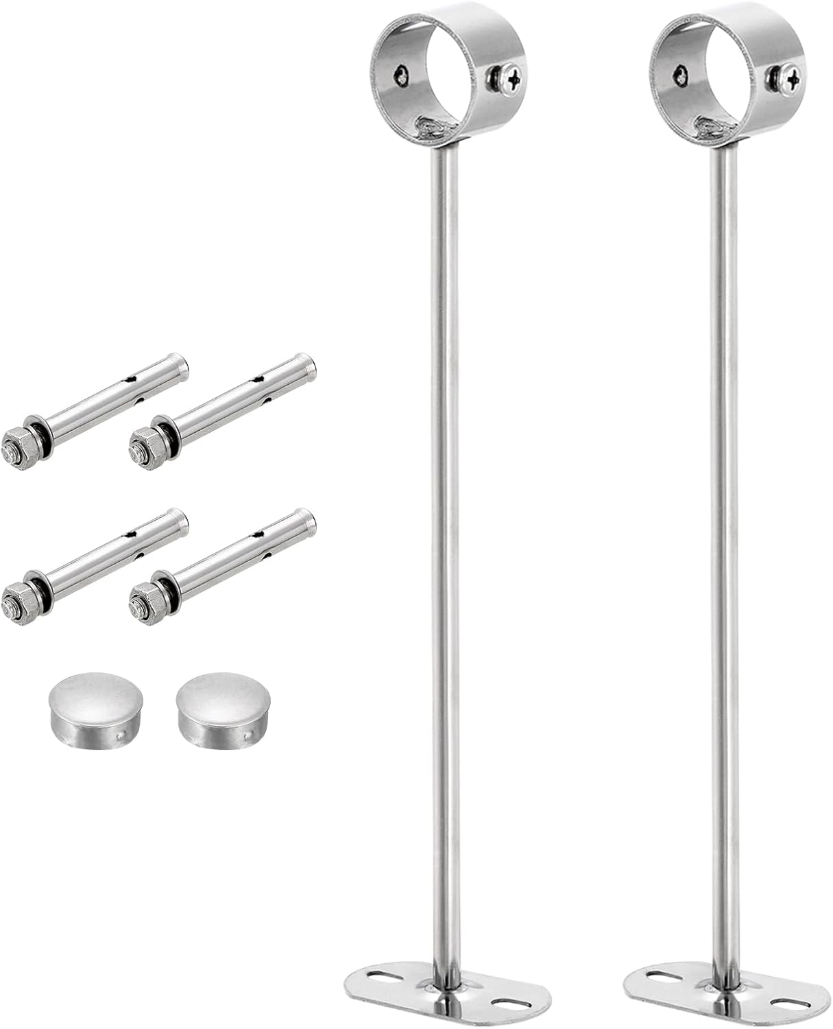 uxcell 4 Set Ceiling Mount Curtain Rod Bracket, 32mm/1.26" Pipe Length 250mm/9.84" Stainless Steel Curtain Rod Hooks Hangers for Walls Wardrobe Pipe Curtain Pipe, Silver