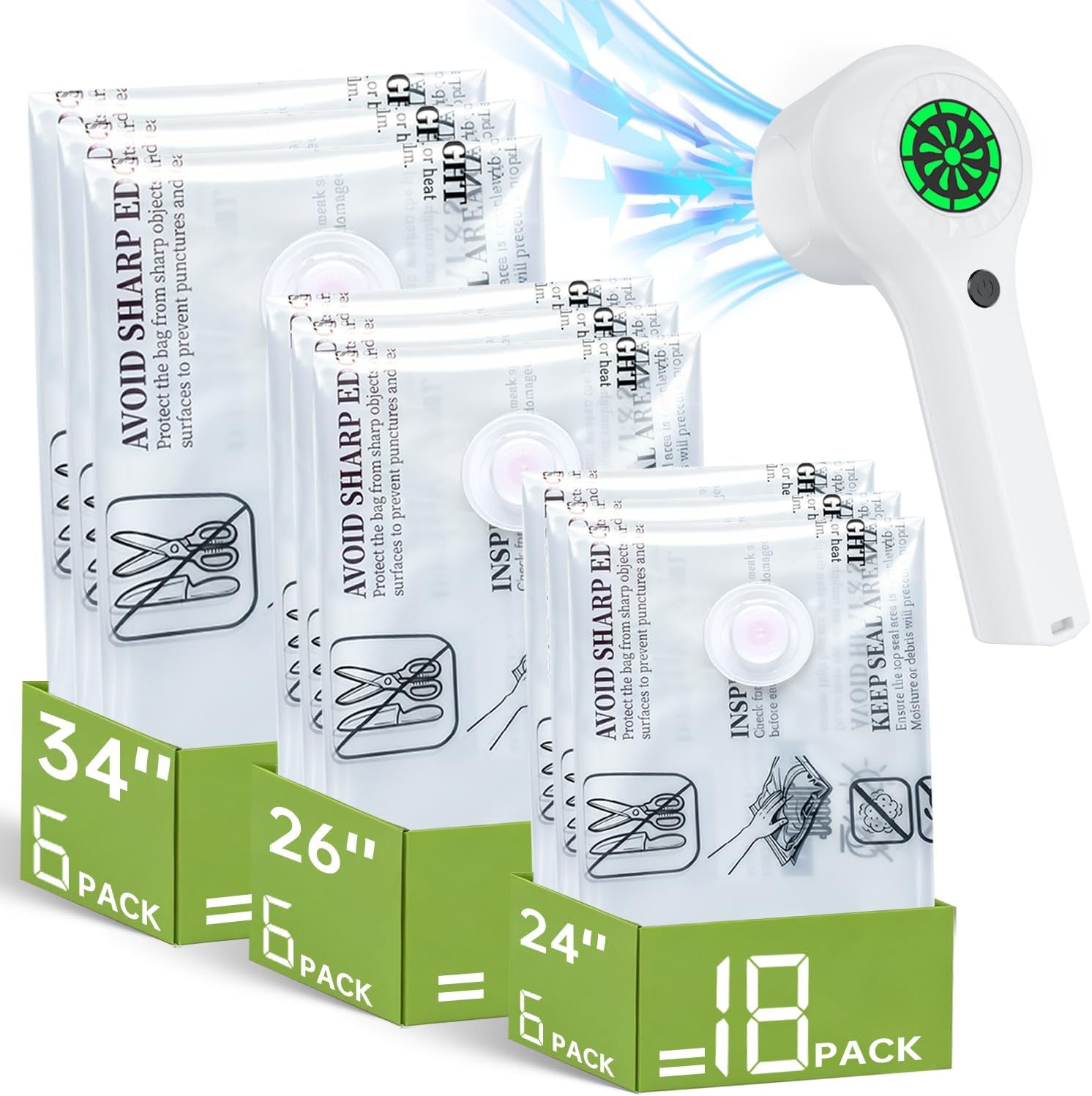 | Size | 15 Bags with Cordless Pump |