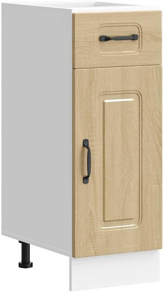This kitchen base cabinet is made to upgrade your cooking space while giving you essential storage solutions. The Sonoma oak finish brings a warm and welcoming feel, making it a classy addition to any kitchen, whether modern or traditional. Its smooth surface and sleek lines aren't just good to look at; they also provide a practical piece of furniture that can hold everything from pots and pans to kitchen linens.Ample Storage Space: With two storage sections, there's plenty of room to keep your kitchen bits organized. From cooking tools to pantry stuff, this cabinet makes sure everything's neatly stored away.Height-Adjustable Feature: The adjustable height lets you tweak it to suit your needs, fitting various kitchen layouts and making it accessible for everyone.Modern Aesthetics: The contemporary design goes well with any kitchen, giving a polished and tidy look. The Sonoma oak finish is both stylish and practical, creating a warm atmosphere.Durable Engineered Wood: Built from tough engineered wood, this cabinet is made to last. It's water-resistant, making it ideal for the kitchen where spills happen often.Easy Care Instructions: Keeping this cabinet looking fresh is easy; just give it a wipe with a damp cloth. Avoid harsh cleaners to keep the finish in good shape.Color: Brown Shape: RectangularMaterial: Engineered woodFinish: Matte Indoor/Outdoor: Indoor OnlyNumber of Doors: 1Cover Included: NoRoom: KitchenMaximum Weight: 110.2 lbsDimensions: 18.1 x 15.7 x 32.1 in (W x L x H)Min-Max Dimensions: 32.1Leg Height: 4 inWeight: 391.2 lbsLadder: NoBrand: vidaXLDelivery Contains: Kitchen base cabinetAssembly Required: YesRecommended Number of People for Assembly: 1SKU: 853470EAN: 8721158418166