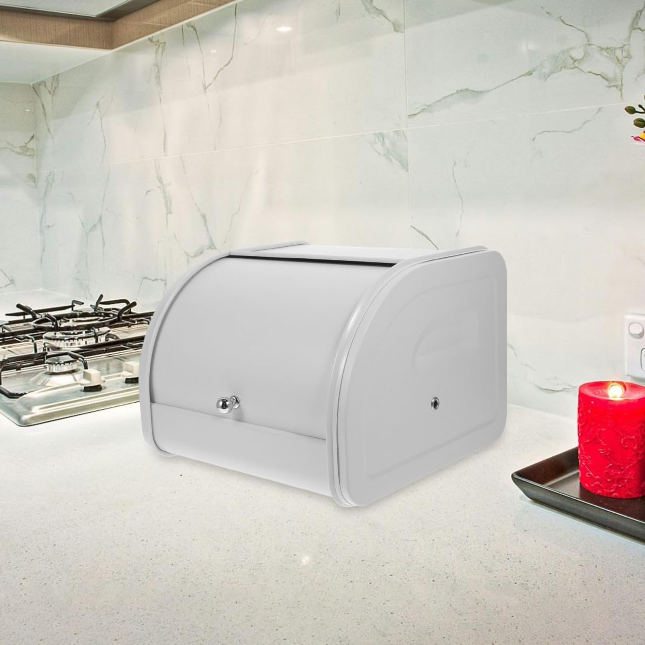 Package Include 1 x bread box Features -Material:Iron bread holder for kitchen counter - Size: 25.50X25.30X19.00cm/10.02X9.94X7.47in bread keeper -Note: this product has color difference bread keeper for homemade bread -Product Info:Bread box storage box - Color:White bread storage container -The edges of the bread box are rounded and smooth, which can prevent fingers from being scratched bread loaf container -The bread box can prevent excessive moisture in the air from entering the box to maintain the taste of the bread bread storage bin -The Bread Box can not your baked goods, also can beautify your kitchen countertop kitchen bread container. -This practical Bread Container is a practical storage tool for your kitchen, and can make your kitchen always in order modern bread bin -Manufactured with reliable and sturdy materials, practical and for a long term use counter bread boxesGoods Informationbread keeper Can't you find a suitable place to store delicious bread? Do you always worry about the cluttered tables in the kitchen? Are you tired of cleaning the kitchen? If so, don't wait any longer, come and take at our creative and multi-function Bread Box that can help you store your different kinds of bread