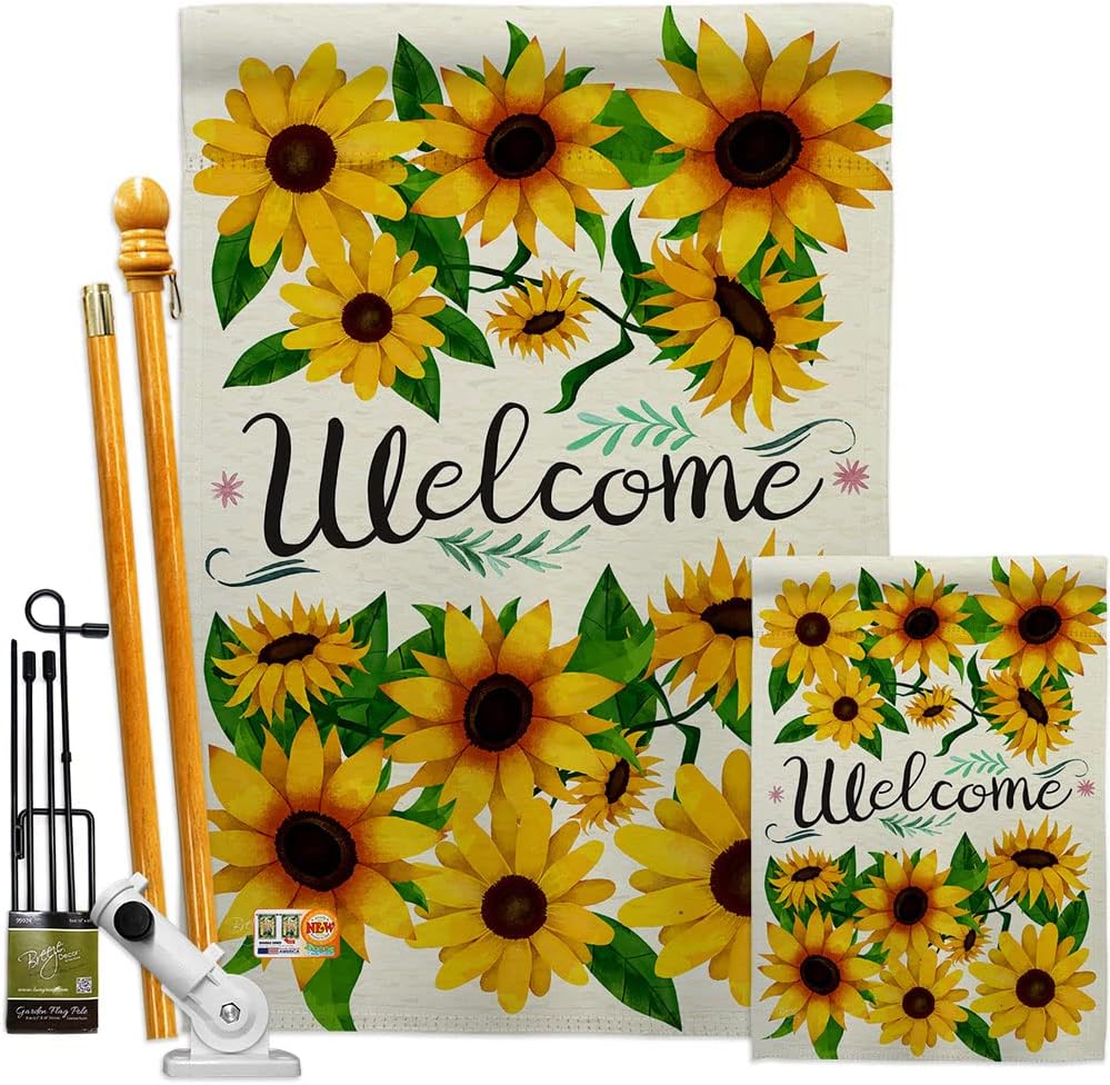 Floral Beautiful Large House Flag, Wooden Flagpole And Bracket – Wall Mount Complete Set with Wood Banner Dowel with String - 2" x 32" HangerBreeze Decor have variety of House Flag Set for all occasions. Uniquely design for hanging indoor or outdoor use. We are committed to offering you exceptional values. Our customers enjoy displaying our House Flag Set for longer periods. Specification: Theme: Floral Size: House Flag Set 28" x 40" Size: Decorative FlagPole With Adjustable Angle Flag Bracket Print: Double-Sided Readable: Readable Single Side Material: Weather Resistant Polyester 300 D Stitching: Double Stitched Display: Vertical Hang Type: Sleeve Artist: Schal Lee Special Features: Origin: Made In USAPackage Include: 1 pc x Large House Flag 28" x 40" 1 pc x Decorative Flag Pole 1 pc x Adjustable Angle Wall Mount Flag BracketFor more than a decade, we’ve been dedicated to manufacturing flags with no comparison in quality and beautiful designs. Our flags are made with our Pro Guard material that is soft to the touch and designs can be read correctly on the flag. A feature that our customers will love. We are committed to using eco-friendly inks that won’t leave a foot print in our environment. MPN: BD-FL-HS-104091-IP-P3-03-S-US17-BD 04091 54091