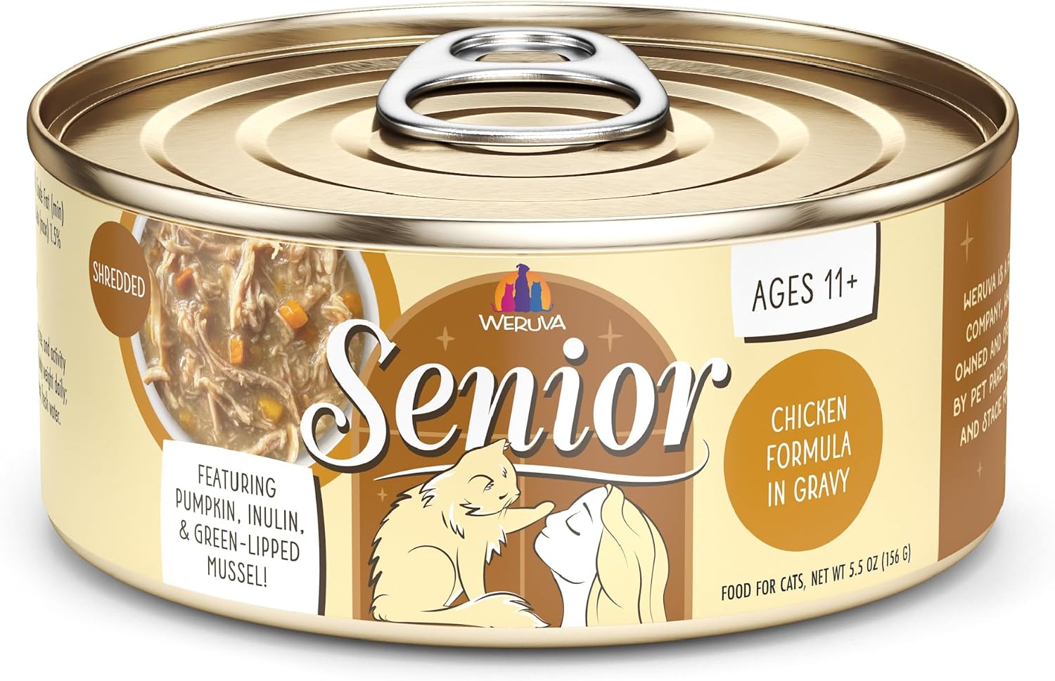 Weruva is here to support your cat's quality of life as they continue to age gracefully. Weruva Senior Cat Food is formulated to meet the nutritional needs of senior cats while offering a variety of proteins and textures. These recipes are crafted with high-quality proteins like boneless, skinless white breast meat chicken, wild-caught salmon, and tuna that help cats maintain lean body mass and hydration through meat. Feed The Bond That Never Fades