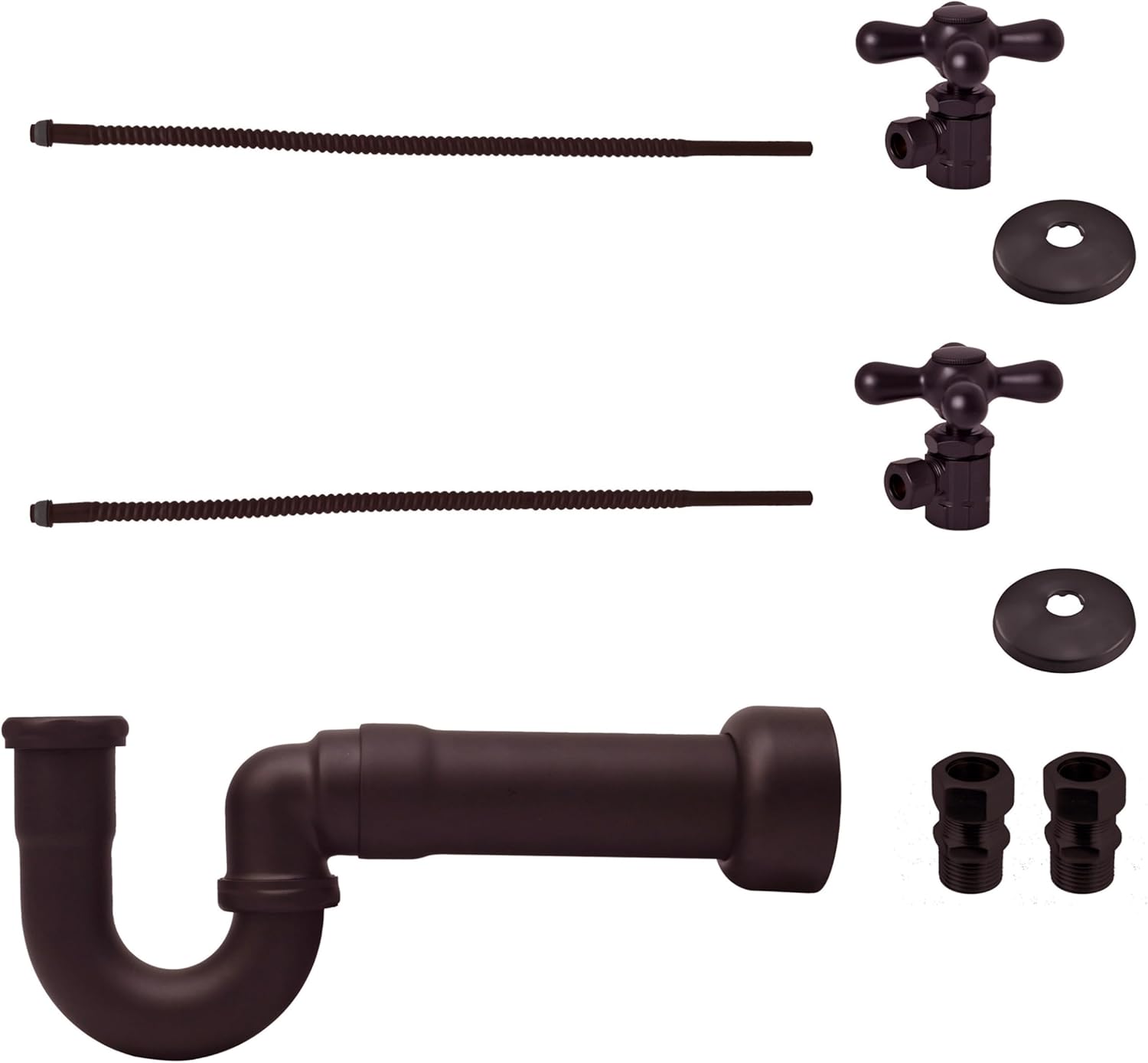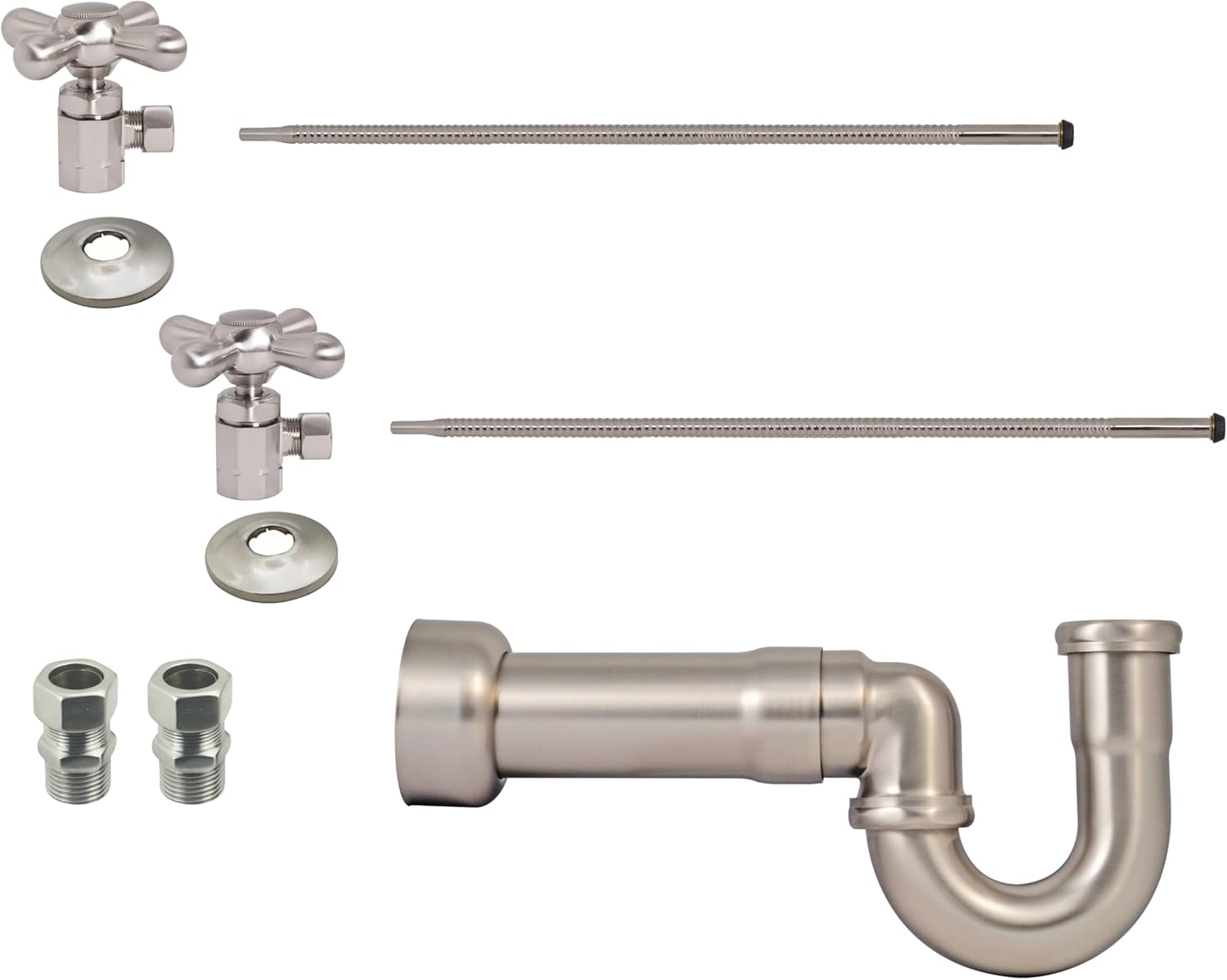 Product Description This Westbrass Pedestal Console Sink Plumbing Kit comes with universal 3/8 in. angle stops with cross handles, 3/8 in. x 20 in. corrugated annealed brass supply line risers and 1-1/2 in. x 1-1/2 or 1-1/4 in. LA P-Trap with high box flange. The ideal kit for dressing up an exposed or console style kitchen or bathroom sink. The angle stops fit both 1/2 in. IPS or 1/2 in. Copper Pipe (5/8 in. Nominal) and come with sure grip flanges to fit both sizes. Changing washers allows the P-Trap to fit both kitchen and bath sinks, and the finishing touch to compliment for PVC or ABS sink rough-ins. Available in a variety of stylish finishes, this item is sure to complement your existing fixtures. Be sure to check out our other model styles and VISIT OUR WESTBRASS BRAND STORE for more Kitchen and Bath items to stylize your home with convenient functionality and beauty. From the Manufacturer Westbrass was founded in 1935 by two brothers, to serve the needs of all plumbing wholesalers on the West Coast. The product lines at the time included items such as faucets, valves, malleable fittings, etc. After becoming the premier distributor of plumbing products, the company was bought in 1985 by Max Homami. Seeing a boom in the Home Improvement Industry, Mr. Homami had a vision to make Westbrass the leader in Kitchen & Bath Accessories. The company currently manufactures its own products made of the highest quality materials. In order to ensure the excellence in the industry, these products are made to pass the highly stringent requirements of NSF, IAPMO, ADA and many other regulations. The Los Angeles-based company now sells a wide range of Plumbing Specialty Products, Bath Waste & Overflows, as well as Decorative Kitchen & Bath Accessories worldwide. Westbrass holds several patented items including the Deep Soak Overflow designed for extra-deep soaking in most bathing-wells, the Closing Linear overflow and several other intellectual properties. The customer base includes kitchen & bath showrooms, plumbing wholesalers and supply houses, OEM and ODM companies, as well as several national home centers.