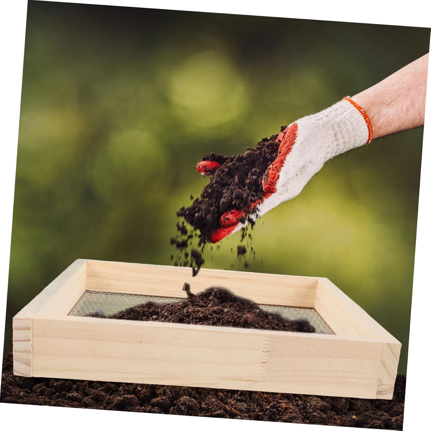 Package List 1 x soil sifter Characteristics -Color:As Shown garden sifter for leaves -Material:Wood, iron garden sieve for gravel -Size:32.00X29.00X5.00cm/12.58X11.40X1.97in mesh garden sifter - Convenient and , lightweight and easy to carry, simple to use, can be used for soil sifting garden sifter for dirt. - Multi-functional and useful, can be used to sieve various garden soil and potted soil gardening sifter. - Suitable sieve hole size, can filter out leaves, gravel, rock, dirt, simple and dirt sifter for garden. - Strong durability, garden sifter is useful and excellent, can be used for a long time garden sieve for soil. - Creative design, made of wooden, metal material, useful and excellent, mesh design, simple to use garden sifter for gravel.Goods Descriptionmesh garden sifter This garden soil sieve is made of wooden, metal material, which is sturdy and for long time use.rock sifter for gardening Can be used for sifting leaves, gravel, dirt, rock, soil.gardening sifter Suitable for sifting stones soil before planting.garden sieve for soil Portable and lightweight, convenient to store and use