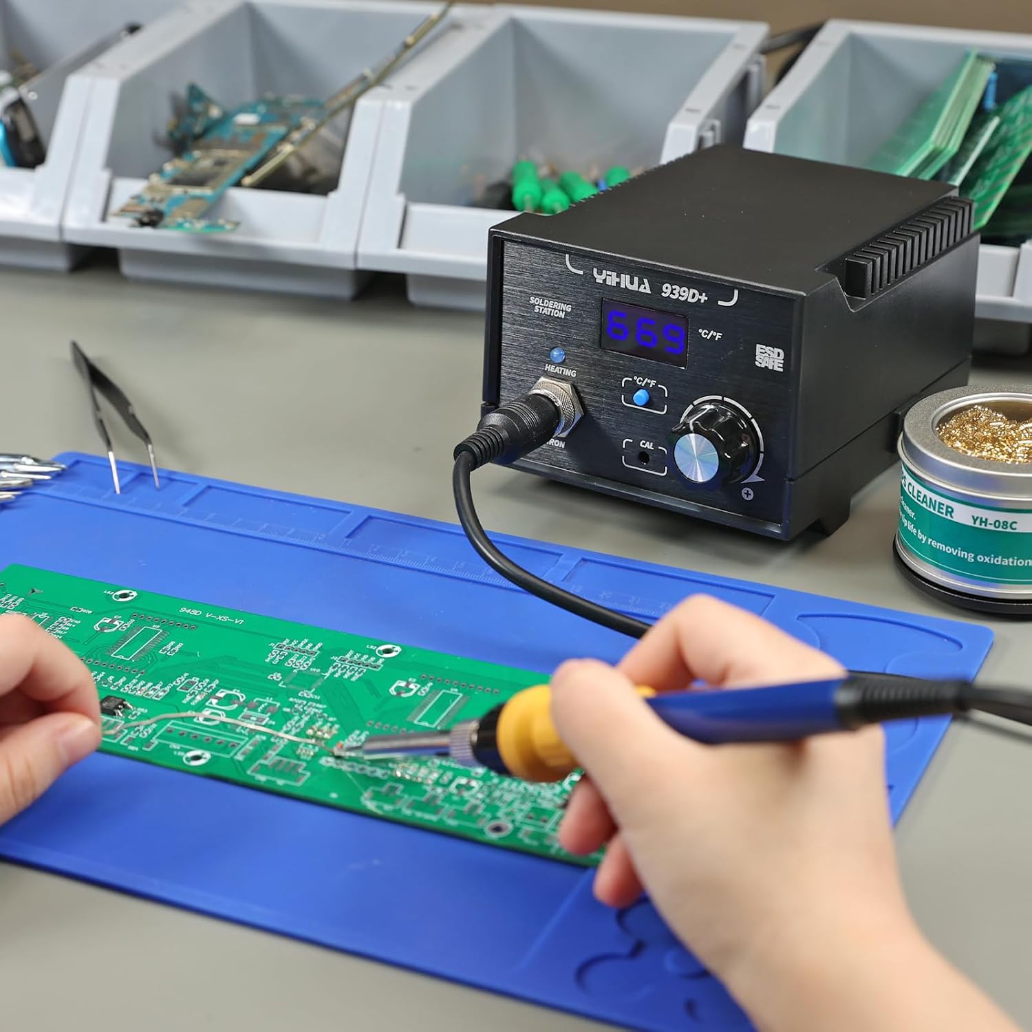 | Included Components | 1 x 907F Detachable Soldering Iron, 1 x 939D+ Digital Soldering Station, 1 x Cleaning Sponge, 1 x Metallic Iron Holder, 1 x Premium Brass Tip Cleaner |