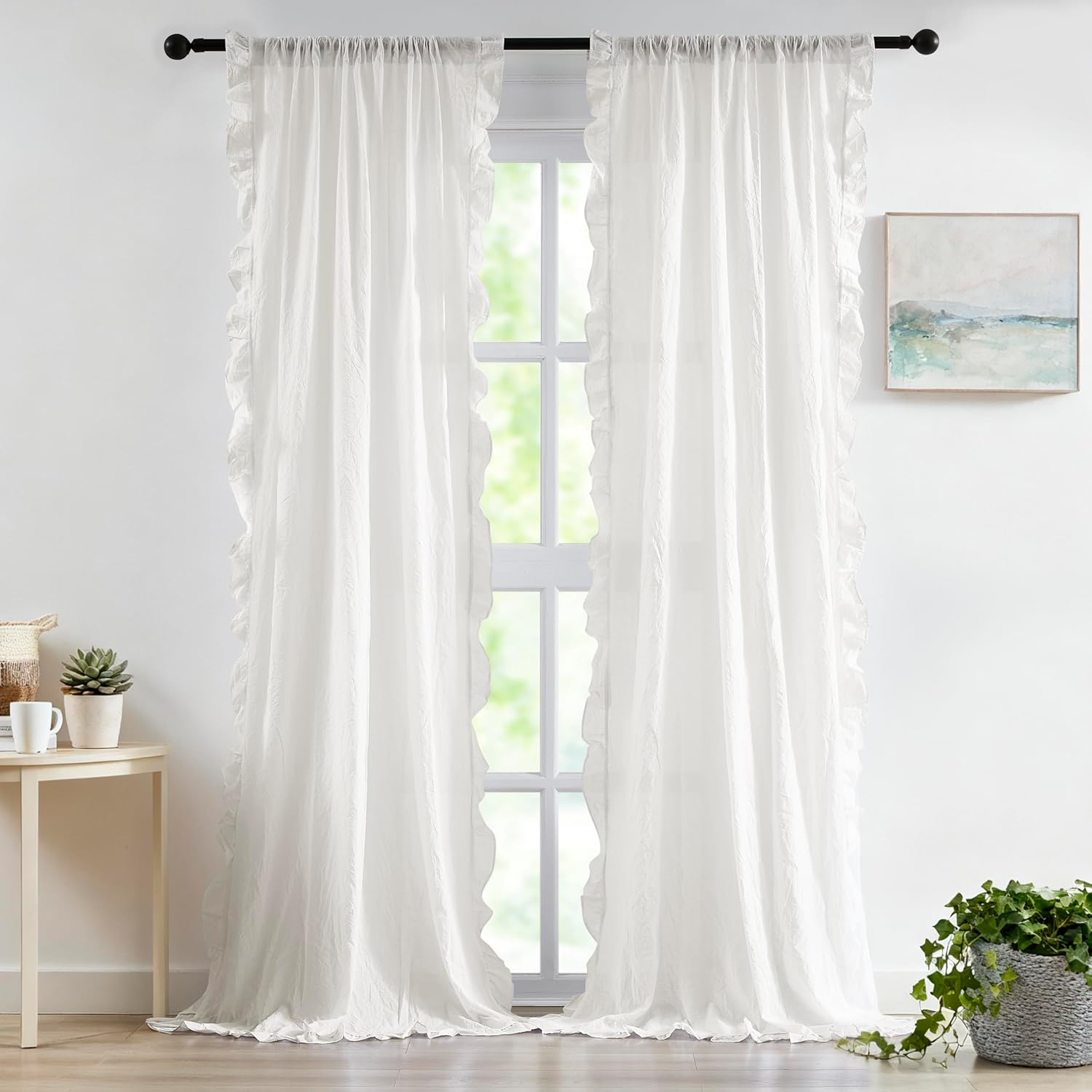 | Theme | Woven Crinkled Buffalo Plaid Semi Sheer Window Curtains with Ruffle Edges |
