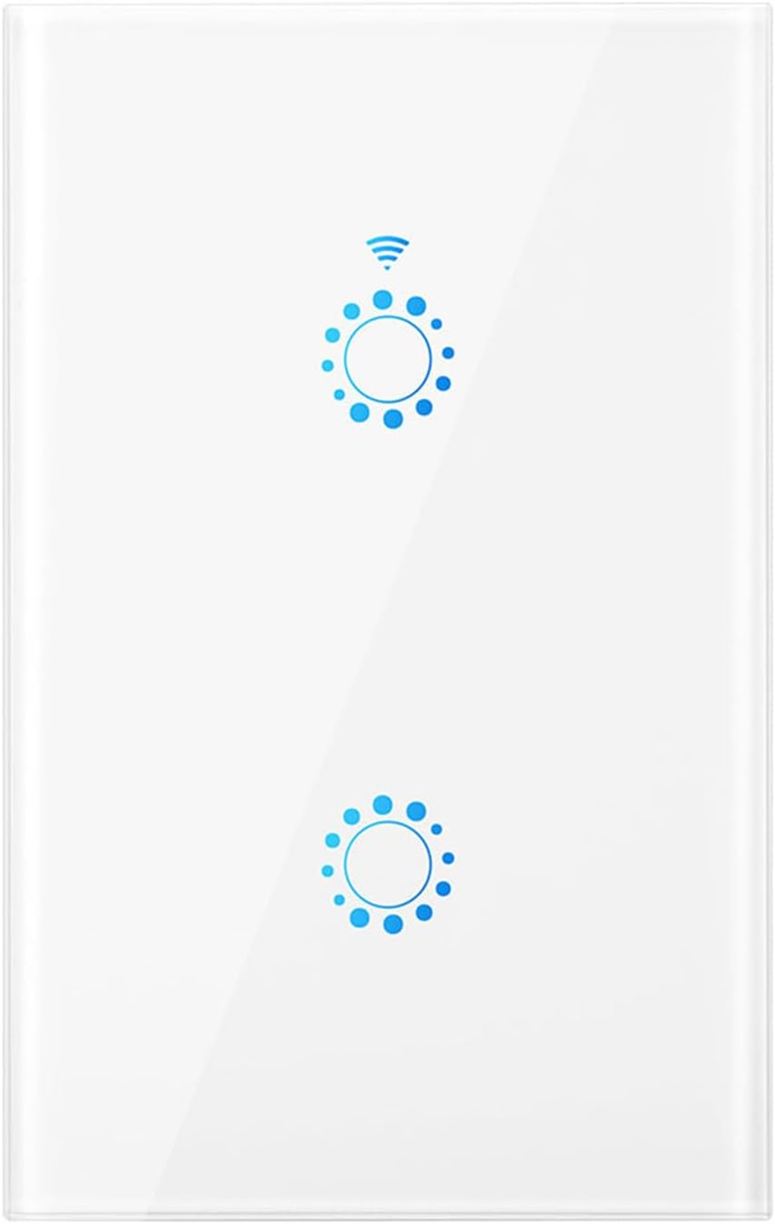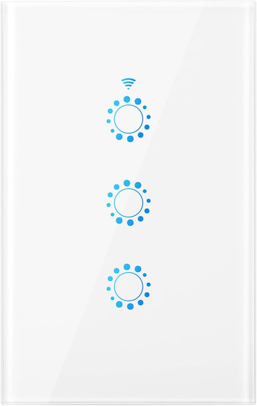 Wifi Smart Touch Panel Light Switch Remote Control Voice Control APP Regulations SmartLife,tuya /ewelinkApp Remote control Rated load: 2200W Weight: 0.2kg Size: 120mm*76mm*33mm (height*width*thickness) Rated voltage: 90-250v AC Rated frequency: 50/60Hz Material: high-grade tempered glass, imported ABS fire retardant injection molding material For families, offices, hotels, hospitals, factories and other places Can control such as incandescent lamps energy-saving lamps, lamps, LED lights and other types of lamps on the market Wireless WIFI smart switch, tempered glass touch panel US standard zero fire series, voice control switch 1.WIFI wireless switch, can directly connect to the local 2.4G router to achieve networking, no need for central control host and other external equipment 2. The bottom box is ABS V0 fireproof material, the touch panel is tempered glass, the thickness is 3mm, first-class quality; 3. Ultra-wide voltage input and output, can support the voltage range of 90V-250V, safer with zero-fire two-wire wiring; 4. Through smart speakers and smart voice assistants(Echo / Dot / Dot / Tap / Assistant / Home / IFTTT / HomeKit)voice control is achieved 5.APP supports 22 languages worldwide, in addition to Chinese simplified and traditional, English, also supports Russian, Spanish, Portuguese, German, Italian, etc.; Neutral Line required. Before you buy, please confirm if your House have Netural Line for this Switch. Group Control ,2 Way Switch as Ladder Switch installation in parallel, or 2 or 3 lighting switches the same lamp Work perfectly in ladder mode, programmed master and slave mode from the Smartlife application only one is going to be stitched into the spotlight and the other switch is just going to connect to phase and neutral to power only switch