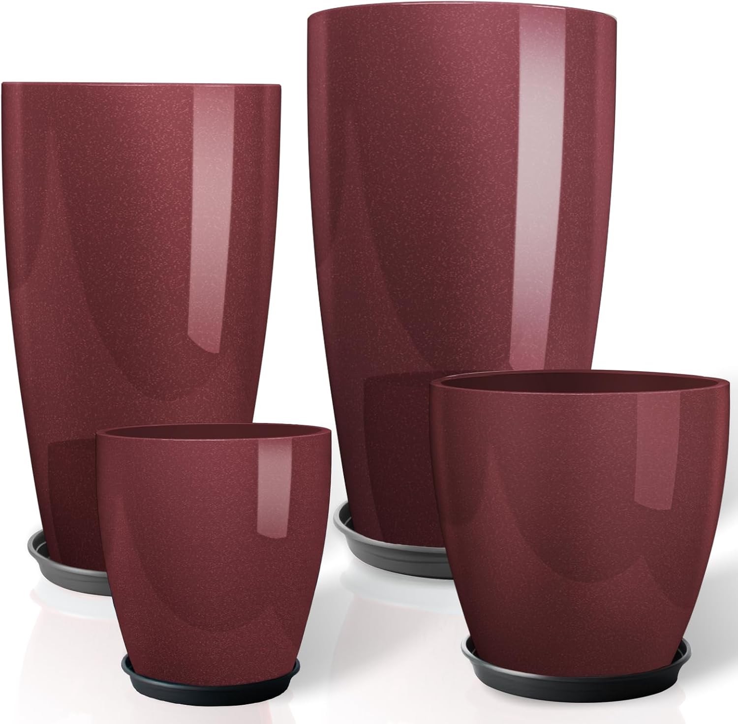 ZMTECH 21 Inch Tall Outdoor Planters Set of 2 Round Tall Plant Pots for Outdoor/Indoor with Shelf Inset, Dark Brown Glossy Smooth Finish - Large Plastic Pots with Drainage Holes for Front Porch Patio