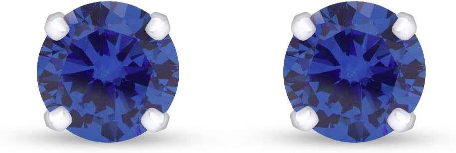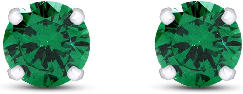 10K Solid White Gold 3mm Round Cut Simulated Gemstone Stud Earrings