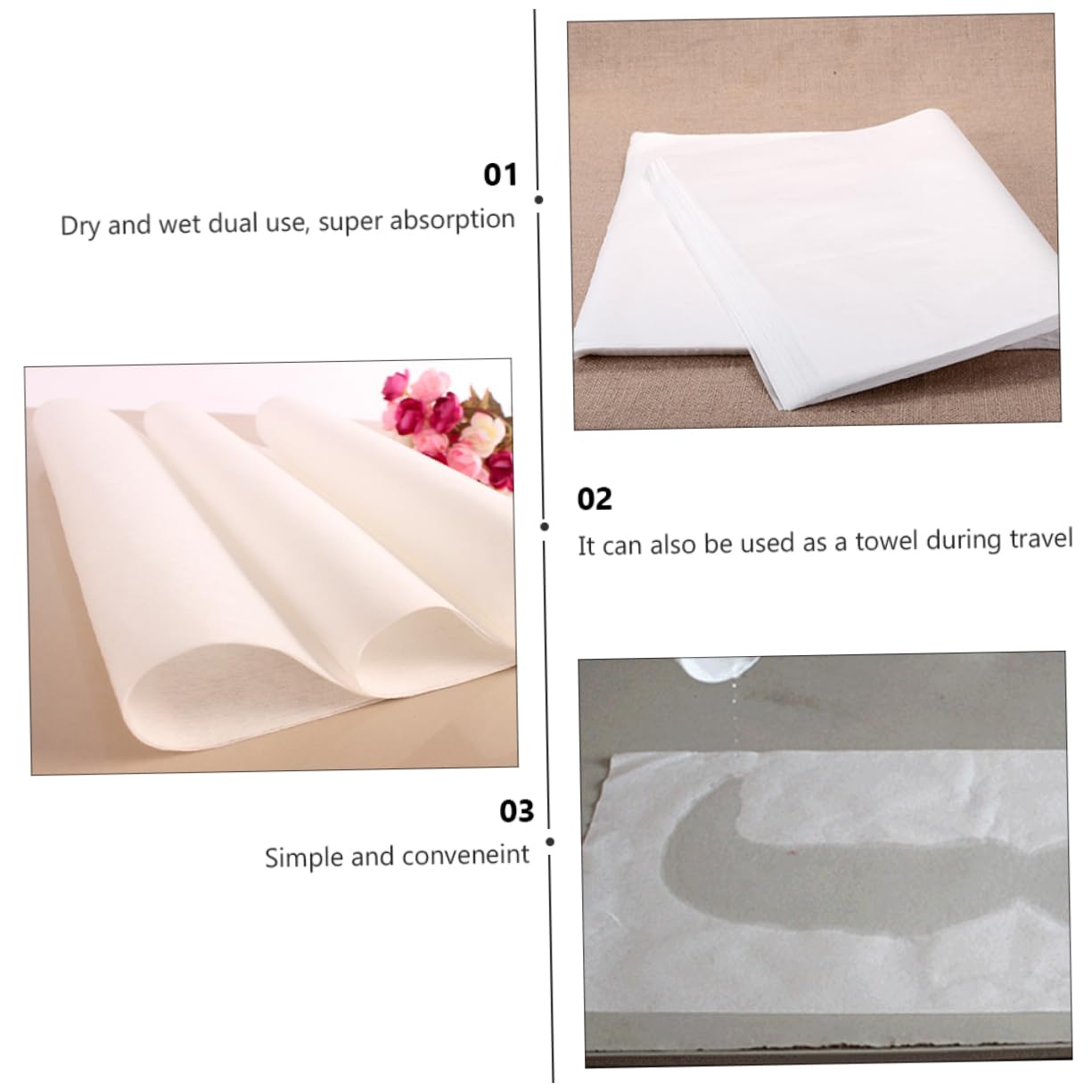 Package Include 1 x Bag of 190 Sheets Towels Features -Size: Approx. 27.00X52.00X0.10cm / 10.61X20.44X0.04in Foot Towel -Material: Wood Pulp Foot Bath Towel -Color: White Water Absorbent Towel -You can easily buy this set of practical disposable foot bath towels at an Feet Wiping Towel. -Multi-functional, can clean the bathroom dressing table, bathtub, practical for use Face Wash Towel. - water absorption ability, can be used to wipe hair, body after bath Kitchen Cleaning Towel. -Disposable design, clean and sanitary, an important accessory for salon Pillow Towel. -With strong water absorption capacity, not easy to drop Foot Spa Wiping Towel.Goods DescriptionWater Absorbent Towel If you are looking for feet bath towel with reliable and reasonable , I will tell you that our product might be your choice.SPA Salon Towel We adopt -end , can rest assured.Foot Bath Towel It would be your cleaning helper for you and your house.Kitchen Cleaning Towel Meanwhile, it owns an practical design