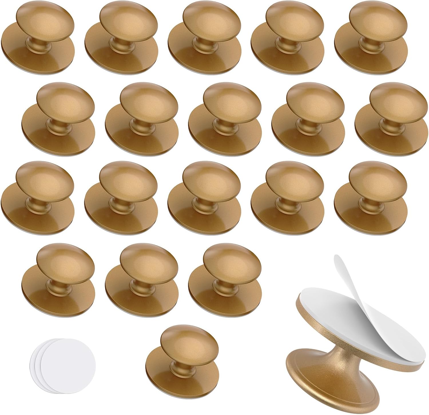 40-Pack Self-Adhesive Cabinet Knobs, No-Drill Self-Stick Drawer Knobs for Dressers, Kitchen, Glass Cabinets, Closets - Strong Adhesive Round Stainless Steel Stick on Handles (40, Gold)