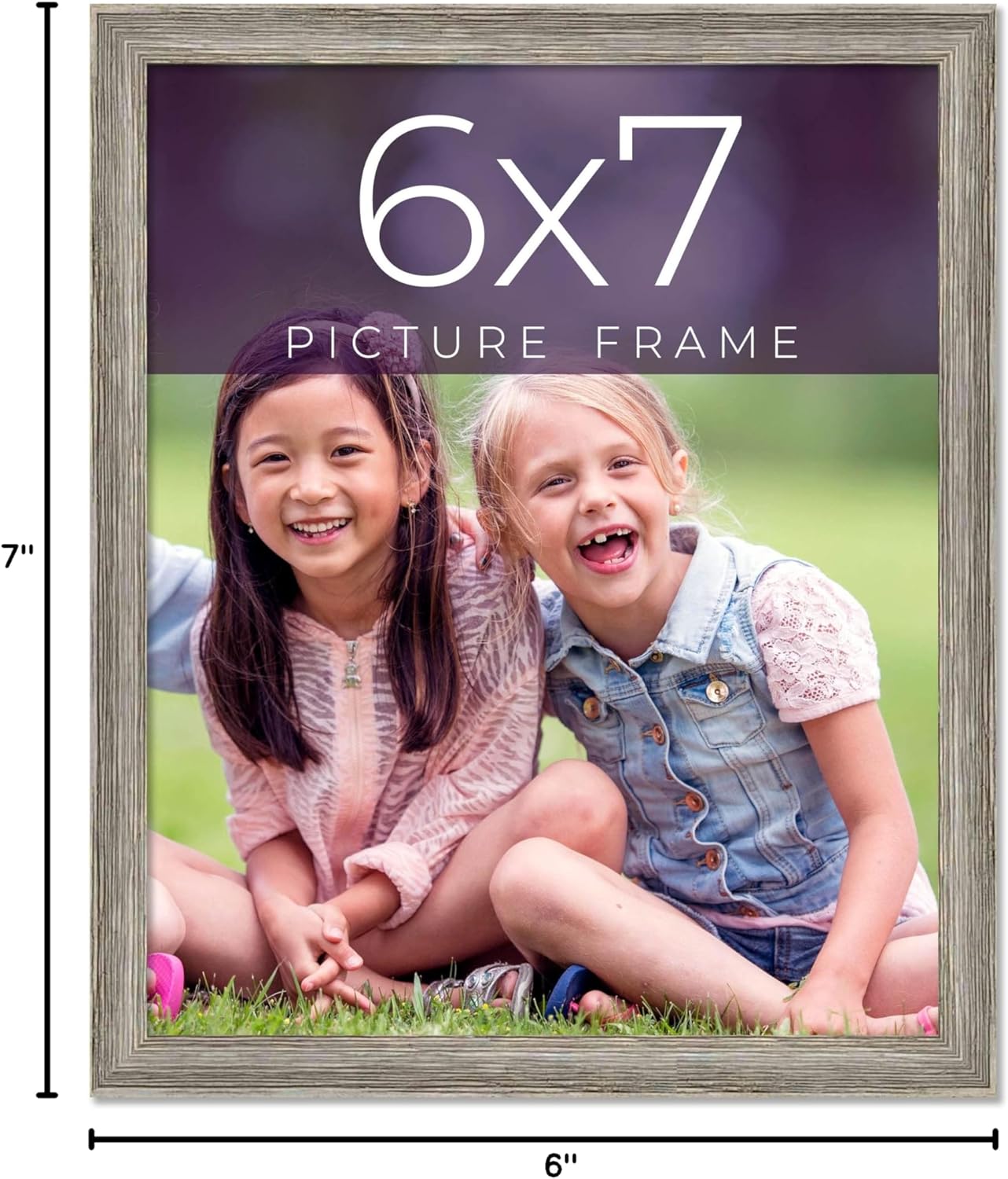 6x7 Frame Grey Solid Wood Picture Frame Width 1 Inches | Interior Frame Depth 0.5 Inches | Weatherly Distressed Photo Frame Complete with UV Acrylic, Foam Board Backing & Hanging Hardware