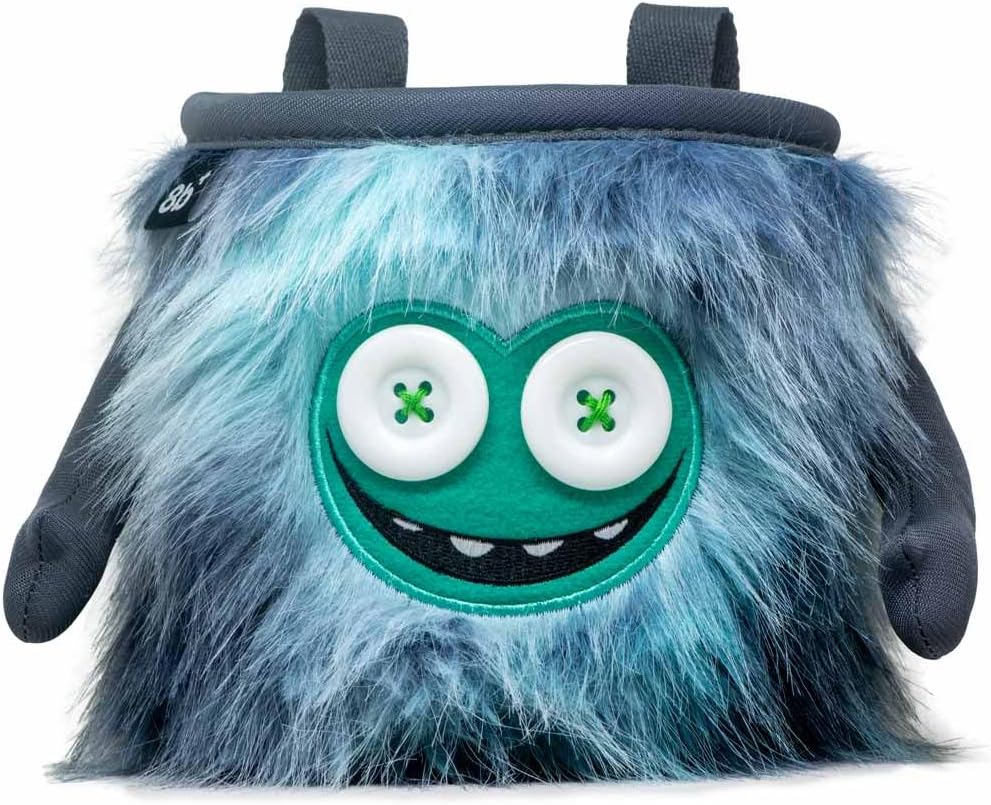 Each 8BPLUS Chalk Bag Character has its own storyFind out which one matches you!ERGONOMIC SHAPE: 8BPLUS chalk bags are well-sized with an extra stiffened access rim. Soft pile lining helps for ideal chalk distribution, while the drawstring closure seals the chalk bag neatly and keeps your chalk dry. Effortless chalking up. DESIGNED BY ENTHUSIASTIC CLIMBERS: This is a handmade chalk bag developed by climbers for climbers, with no compromises on quality or functionality. 8BPLUS creates climbing gear essentials for the sport climbing and bouldering scene. SPECIFICATIONS 5 inch large openingcomes with size adjutsable belt, carabiner and gift pouch2 brush holders (on left and right sides)Material: artificial furLining: Fleece (100% Poly) for ideal chalk distributionWeight: 4.4 ozDrawstring Closure