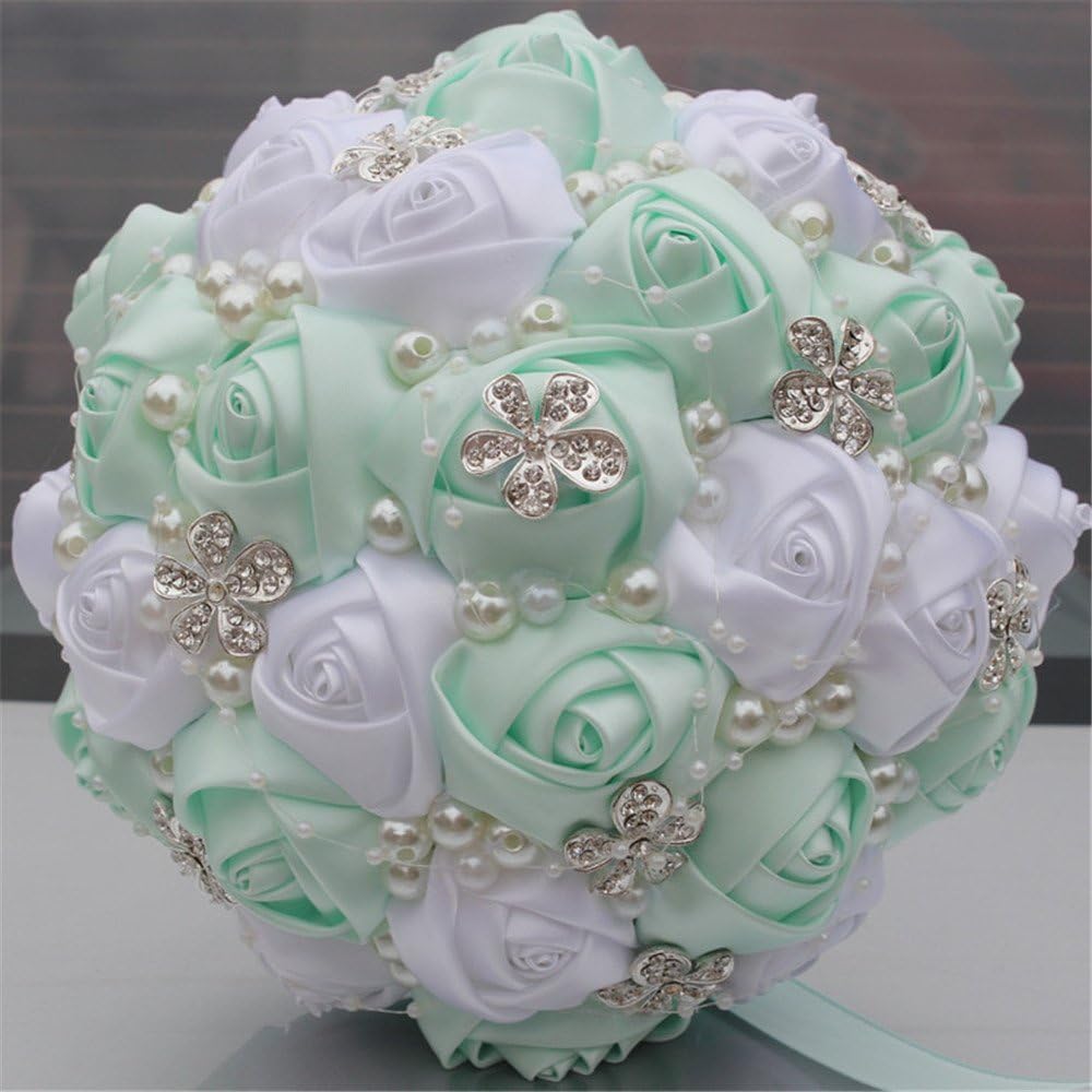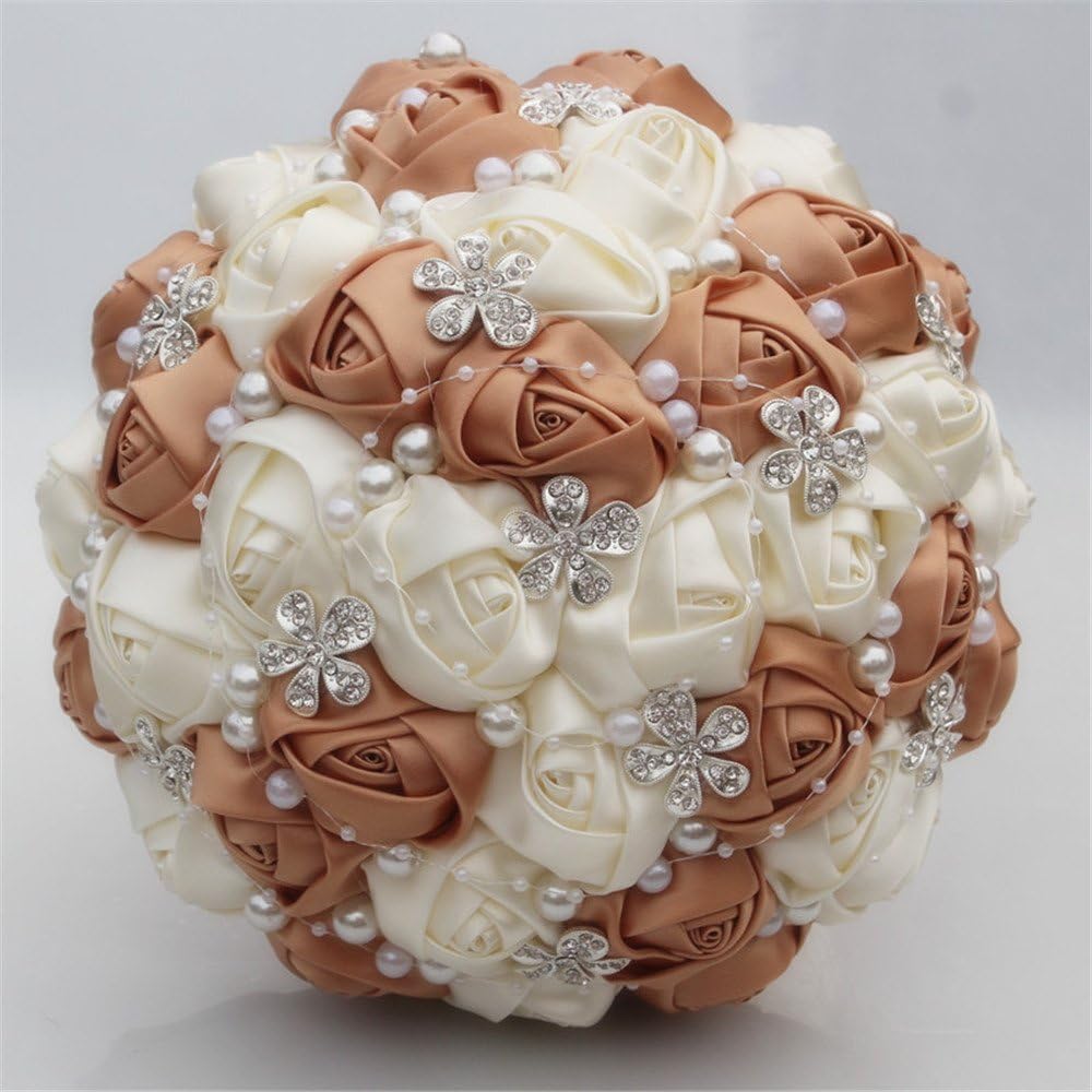 Description - Package included:1 x Wedding Bride Bouquet -Material - Rhinestone brooch, crystal, satin ribbon
