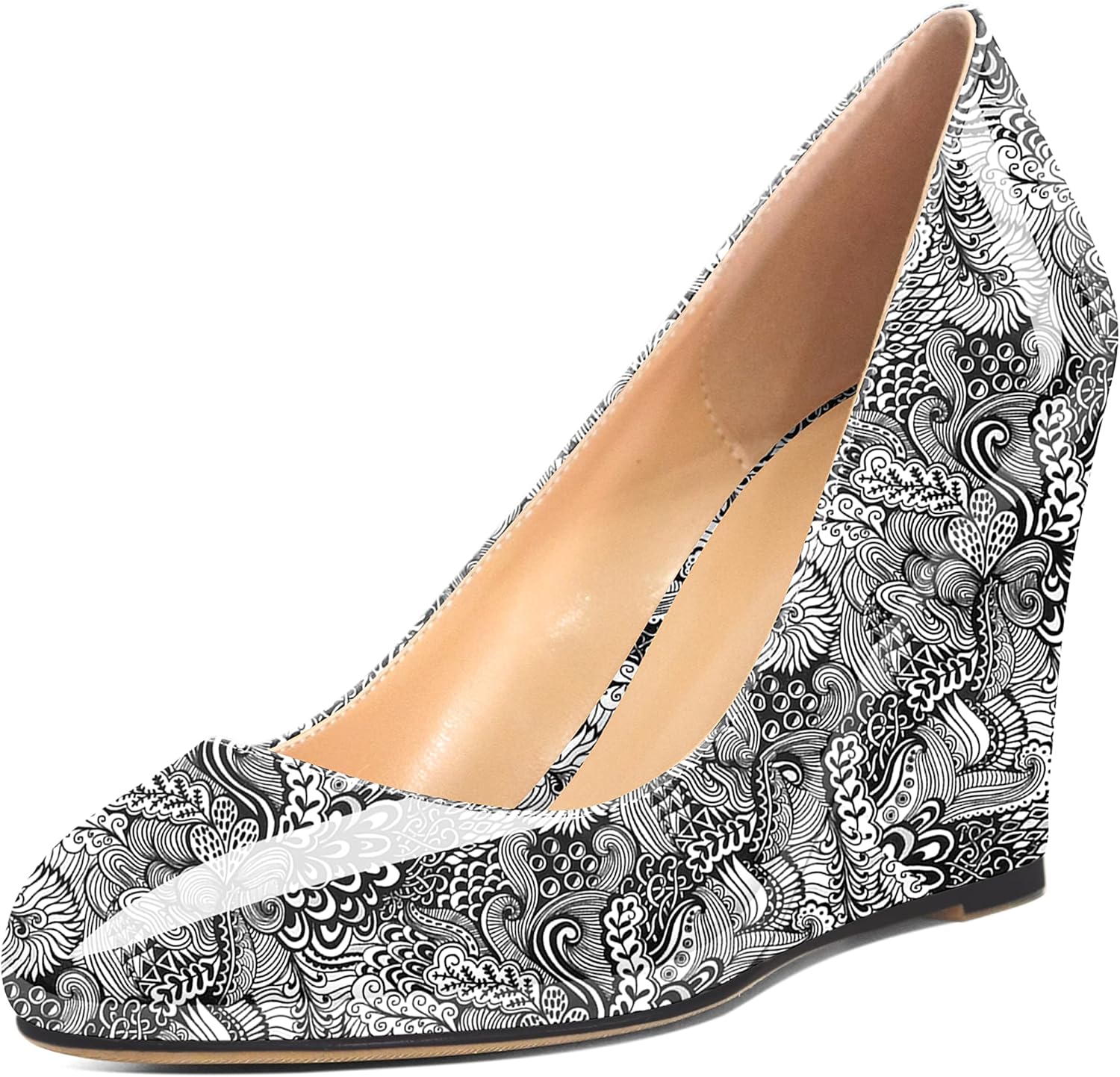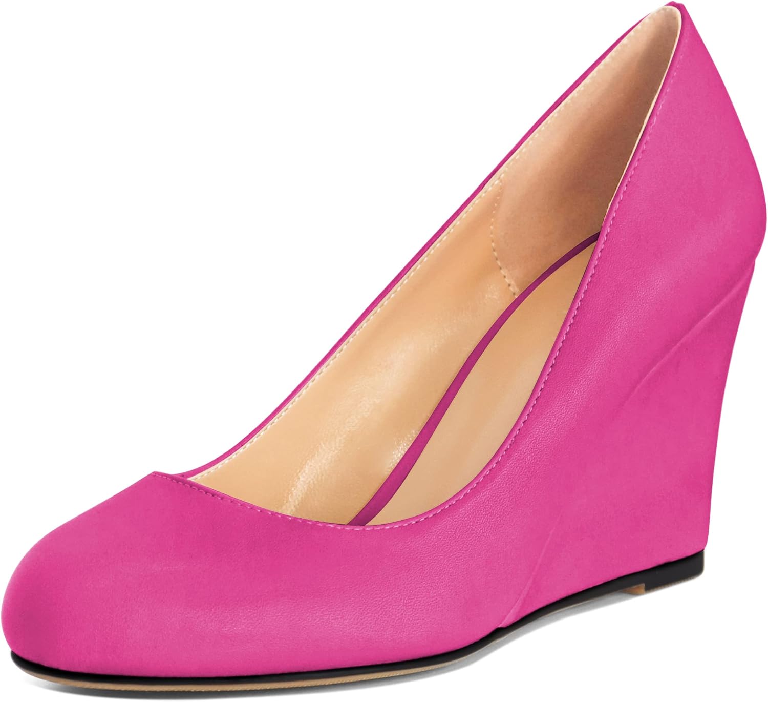 • 🐹👗【wedge Heel Height】Heel measures approximately 3.5 inches/8.5cm. Classic round toe wedge heel pumps provide you a comfortable and gentle fit, offering every step stable and elegant.